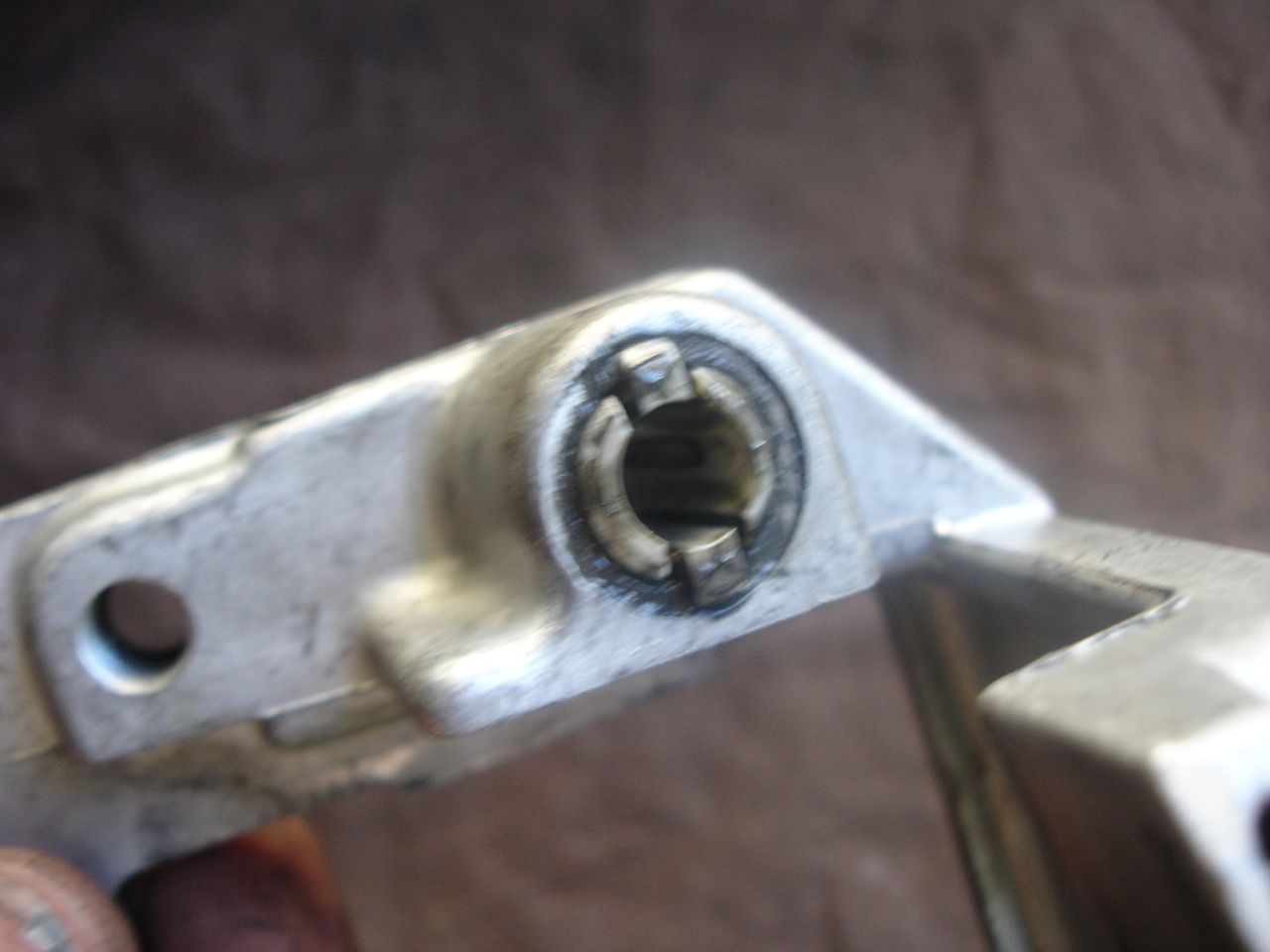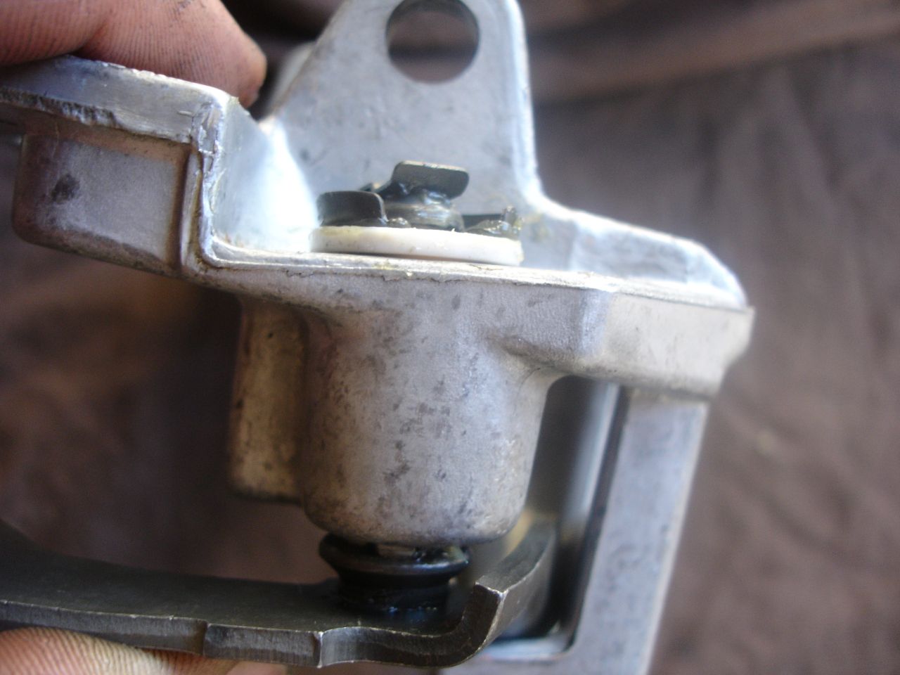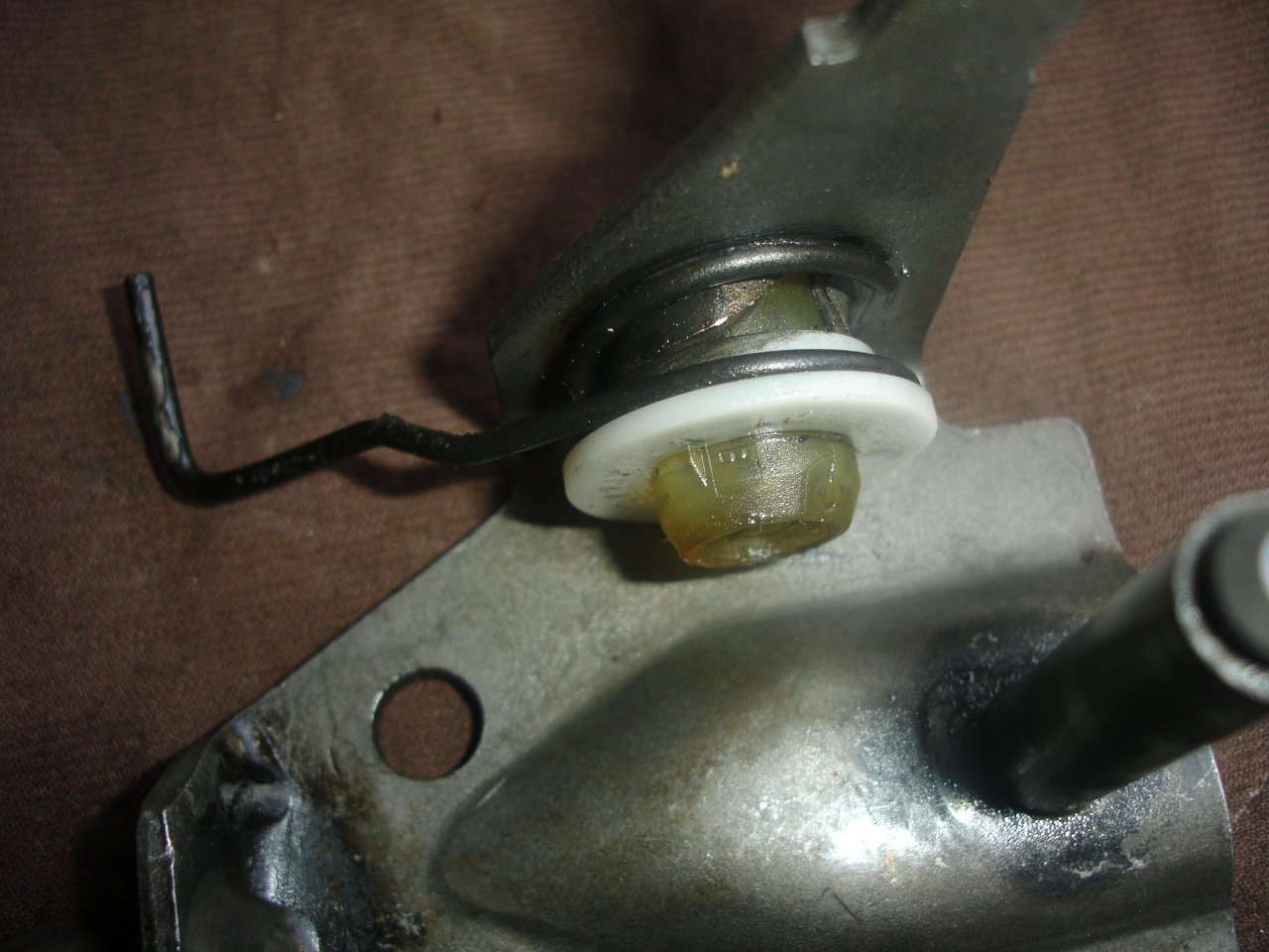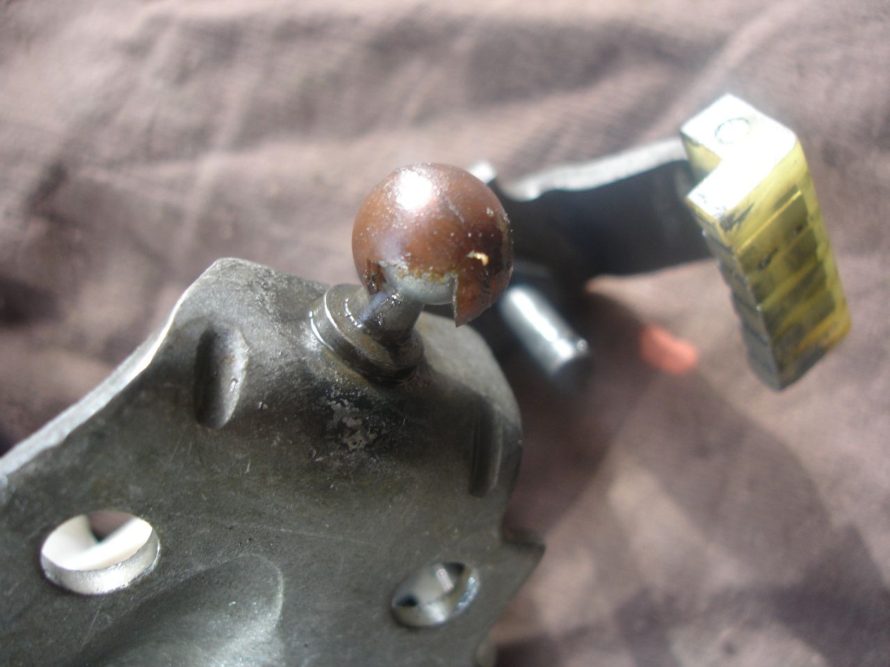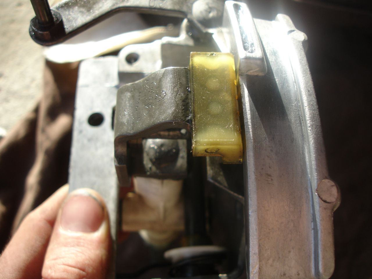 Сега към самия лост. Това размазаното е гумичката която обира удара след като лоста се върне като се изключи задната