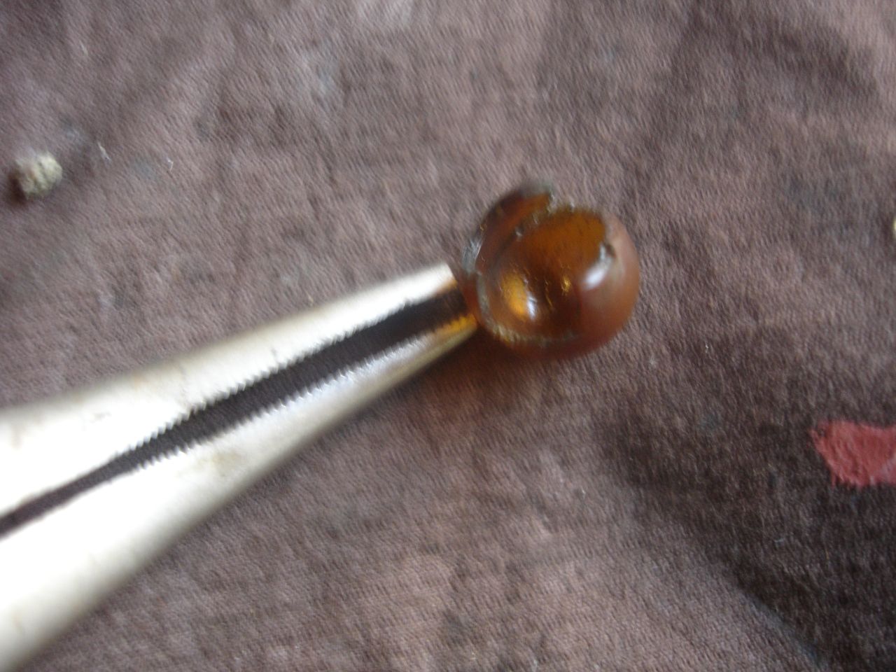 Разполагах с такива криви тънки клещи и ми свършиха идеална работа. Разтворих гумичката и леко леко я нанизах и от няколко опита си влезе на мястото. Тази и другата снимка са по-размазани, защото от много напъване започнаха да ми треперят ръцете. Тук вече е на място, но понеже е прозрачна и не се вижда много