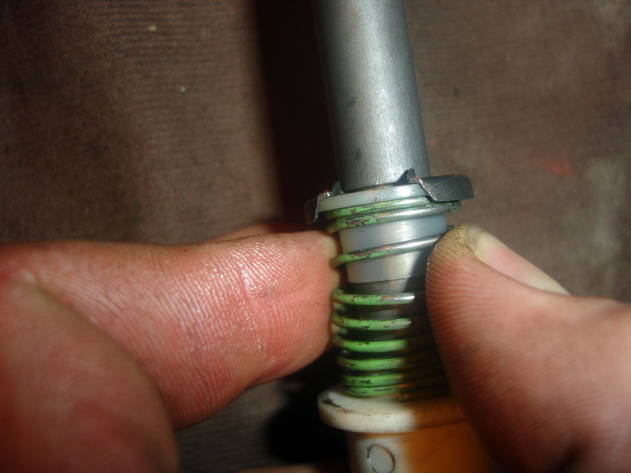 Стигнах най- накрая до моята проблемна пружина. Вижда се къде се натиска на това гуменото и се разглабя.