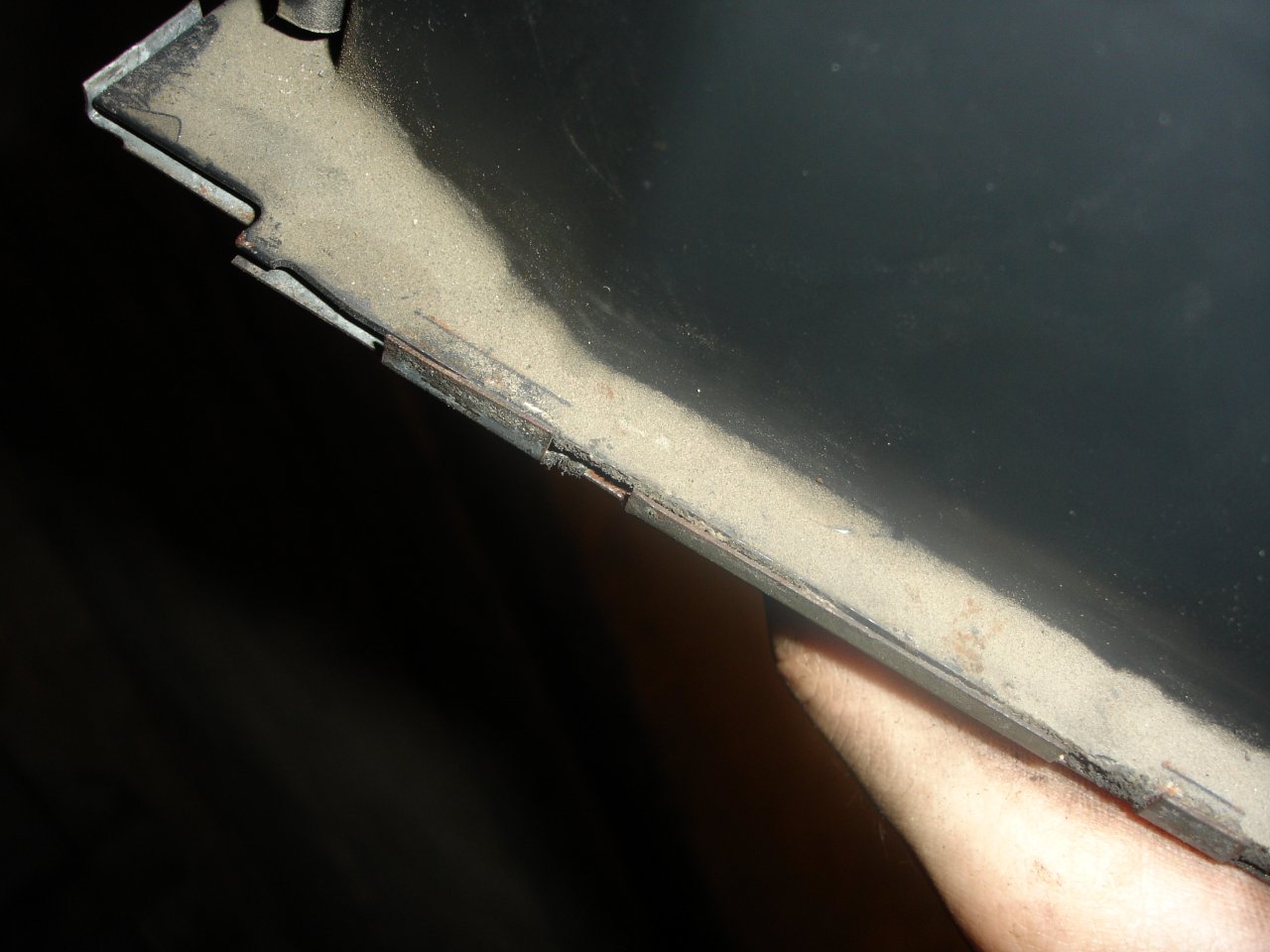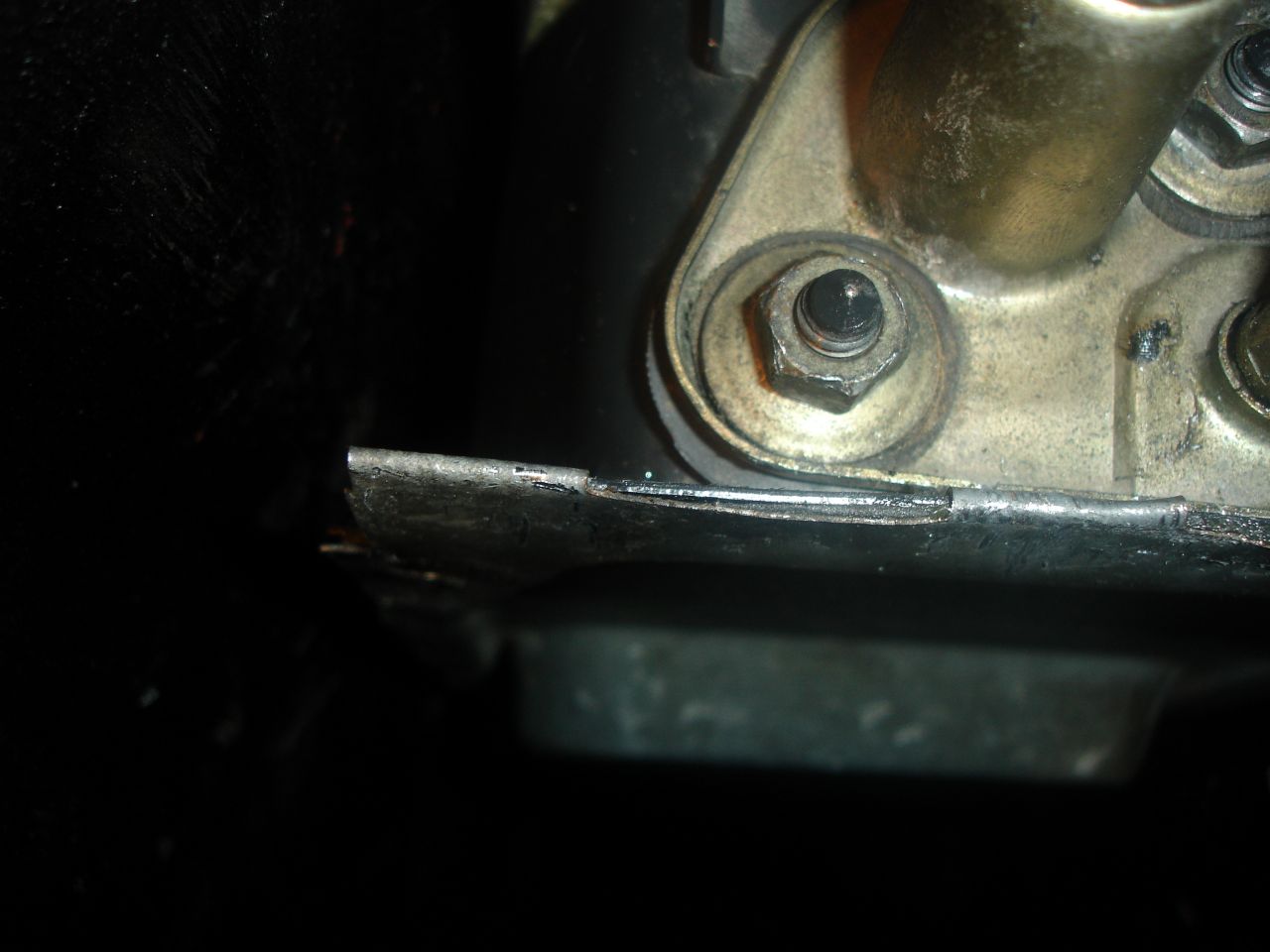Гресирате за последно където сте изтрили без да искате, слагате ламарината отдолу и я стискате по краищата както е била. Много е важно да стегнете болтовете които държат жилата сега, защото после не се стигат като се вдигне кутията