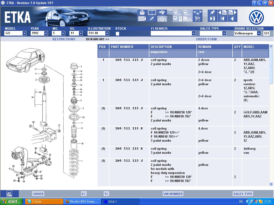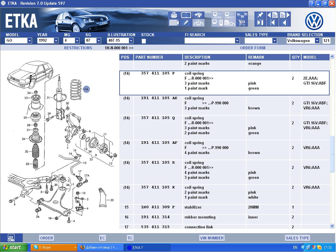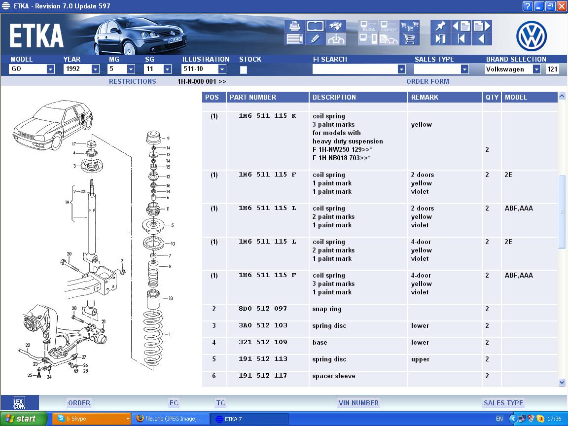 Възможно ли е някой с ЕТКА да ми свали видовете пружини слагани на Голф ВР6 двигател - ААА - триврат.