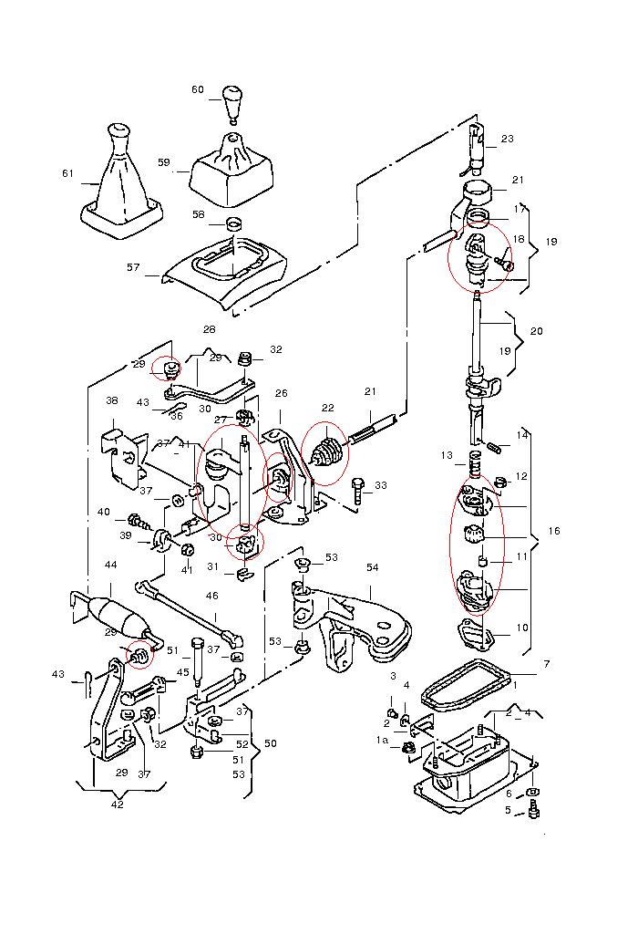 Основните източници на луфт на скоростните лостове на 1.6 AFT/AEK и 1.8 бензинените са: