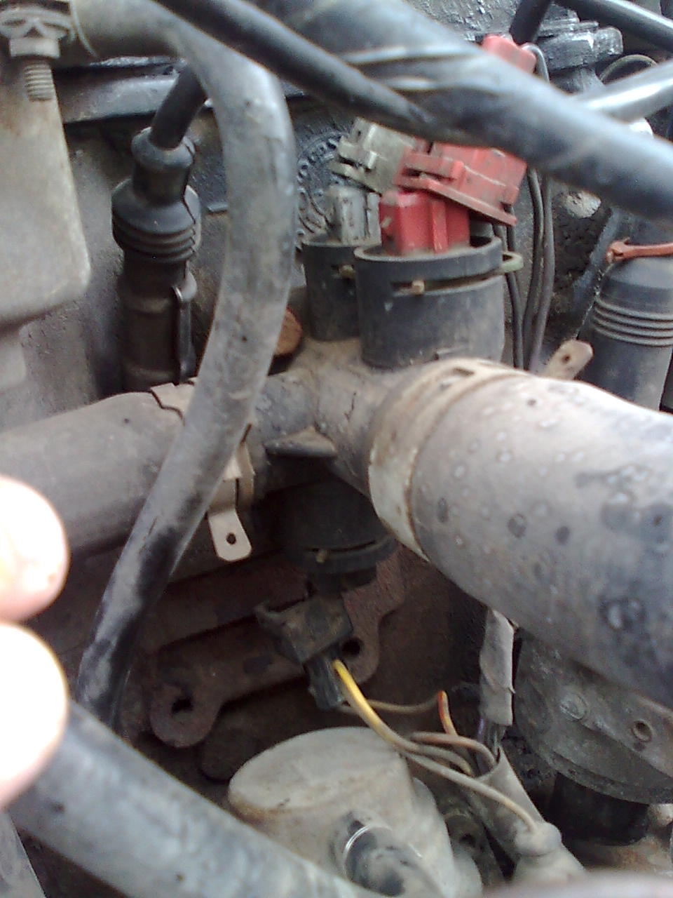 Днеска реших да се позанимавам малко и установих, че датчика отдолу е за стрелката на температурата а тези отгоре когато ги махнех докато работи студена колата при рязко отваряне на дроселовата клапа тресеше яко после като стрелката стигна средата и отвори термостата и закачени и откачени колата се изфорсирваше добре.Та за какво са тези отгоре двата червения и сивия на втората снимка.И за какво е този отстрани на главата на първата снимка , щом за стрелката е този отдолу на тройника третата снимка.