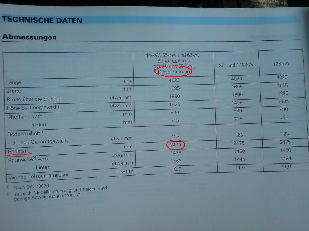 Radstand 2475mm.