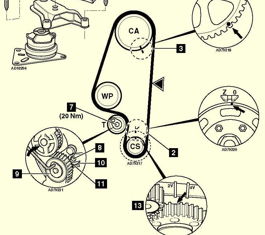 на 2.0 мотор е по друг на4ин не е както на тази схема... ина4е ни6то сложно няма ако ненамери6 белезите бележи колелата с бял маркер или лак за нокти дори и да обърка6 не6то този мотор неудря клапани :)