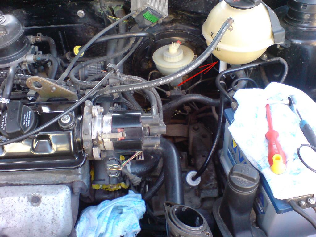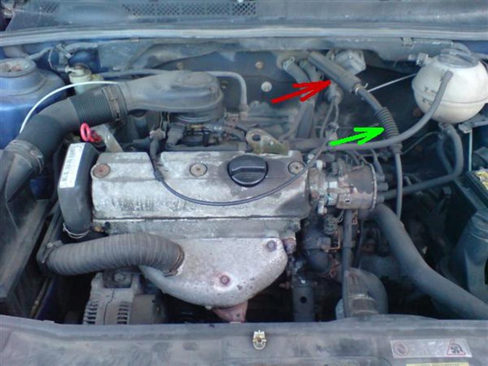 Но гайките са горе ,(около) под казанчето за антифриза се падат.В никакъв случай до вилката ,там има един топуз.