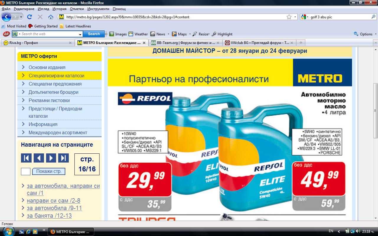 Здравейте,колеги!Вчера го гледах това масло в Метро.Озадачи ме ,че на него пише вносител ТЕХ-КО,а официалния вносител за България е КОРИДА ООД.Също така според каталозите на Repsol 10W40трябва да е RP Elite Multiv , а не Injection.Injection според каталога е 15W40 т.е.минерално.Усъмних се и не го взех.Цената при КОРИДА ООД е за Repsol 10W40 RP Elite Multiv е 53 лв.за 4 л.