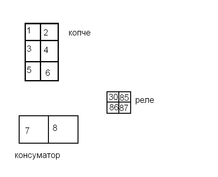 и накрая от 87 от двете релета ще отива към 7 и 8(двата входа на ел. машинката)