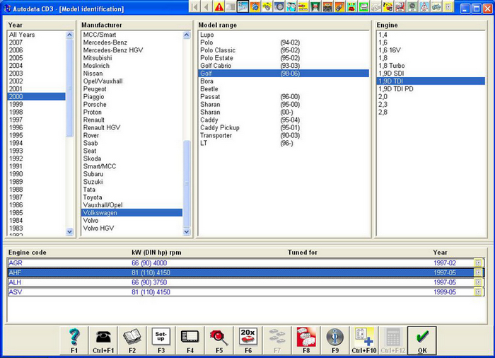 - Намираш си годината, марката, модела и двигателя по кода му и след това най-долу вдясно натискаш ОК.