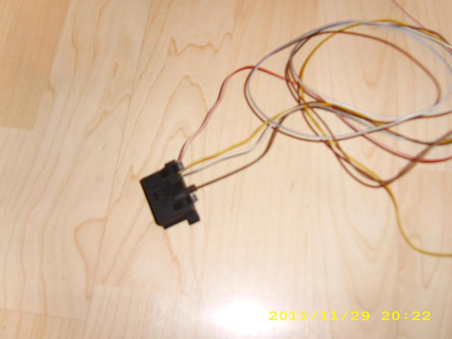 Доколкото знам мисля,че червено-белия е за (+) кафяв (-) и тука става интересното с жълтия и сиво-белия!Двата кабела са обединени в една сива буксичка и точно тя е проблема къде трябва да се мушне!Ето и снимки не са много ясни:
