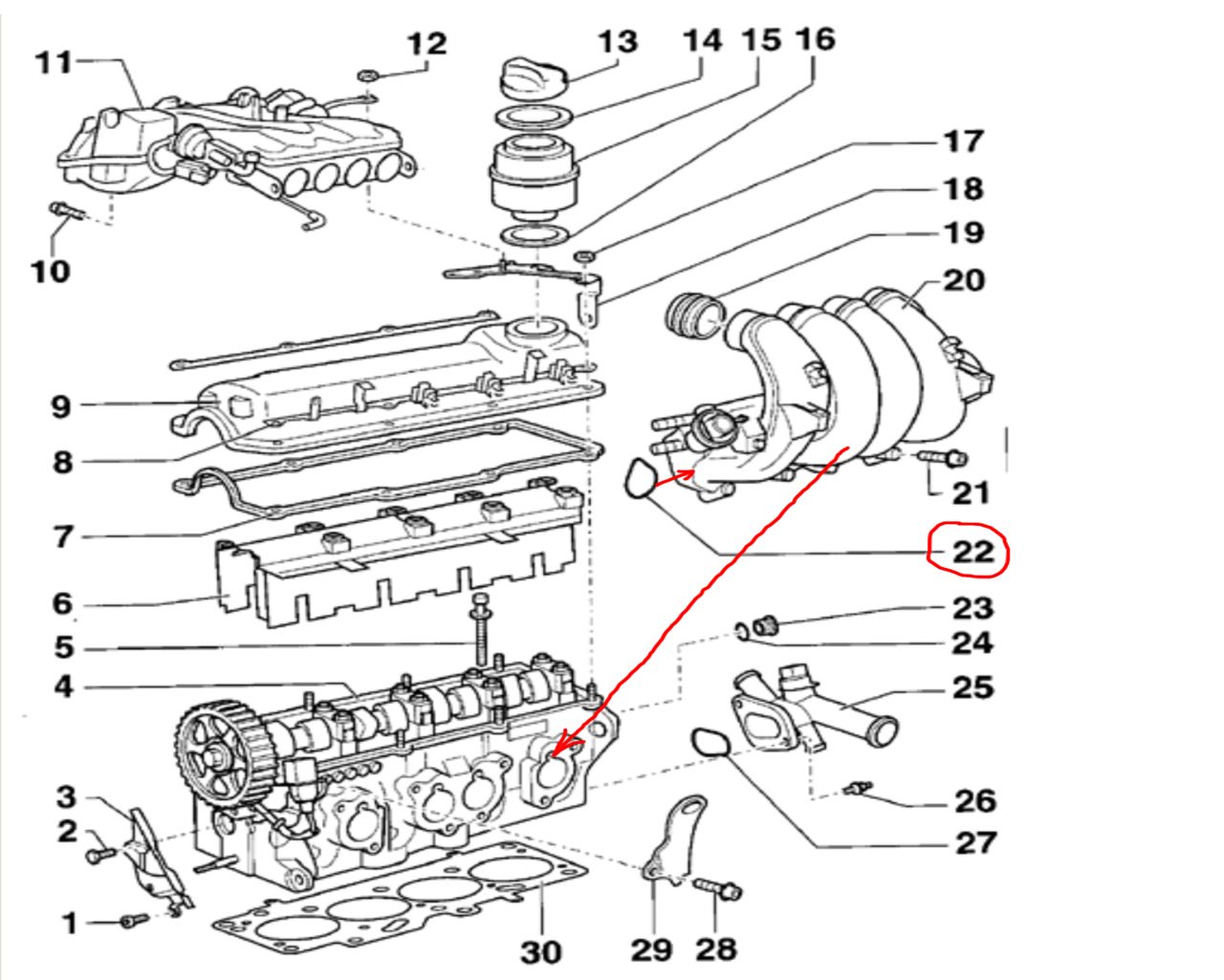 Въпросните О пръстени се поставят на всмукателните колетори, там където те се присъединяват към двигателя, виж картинката позиция 22.