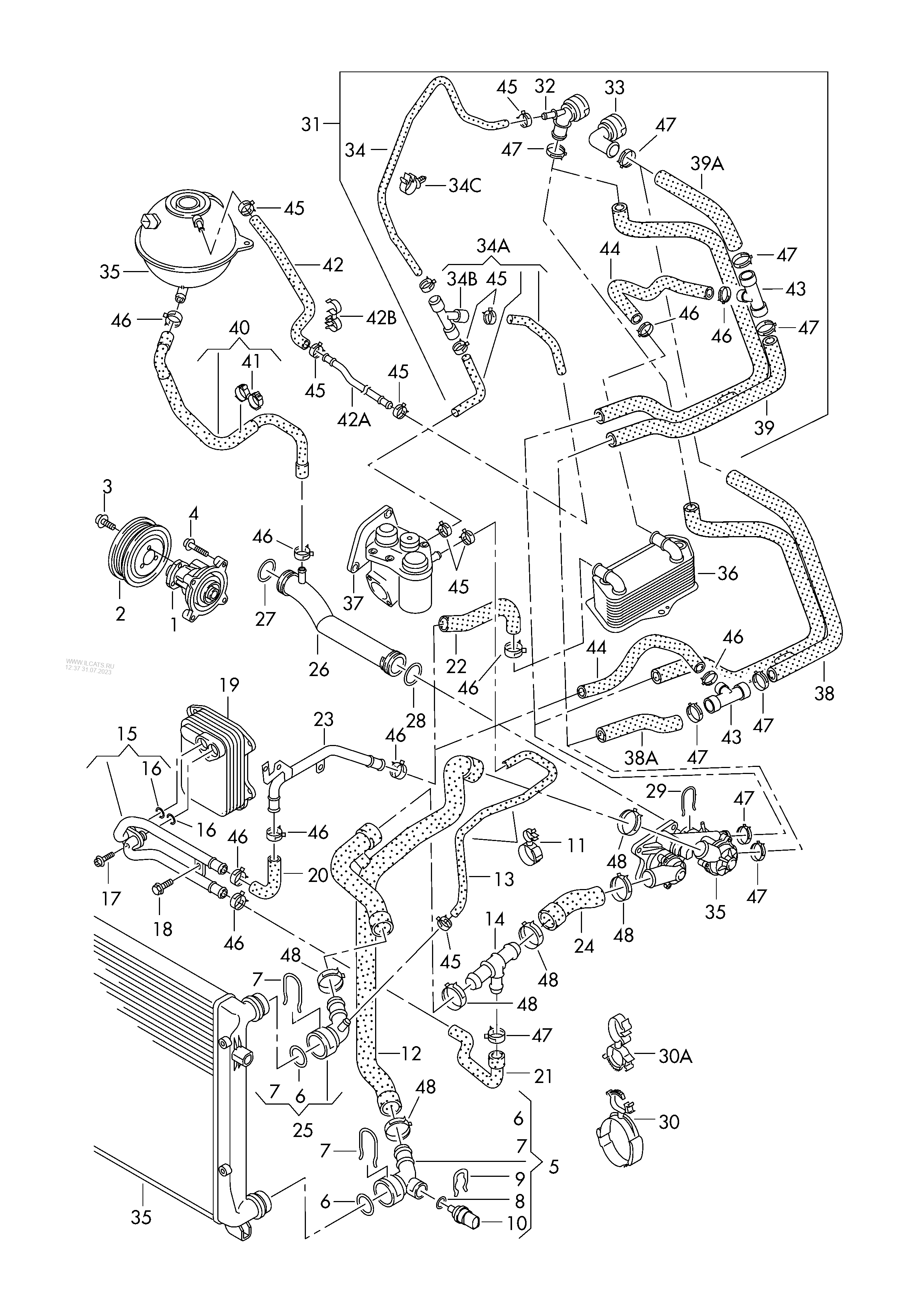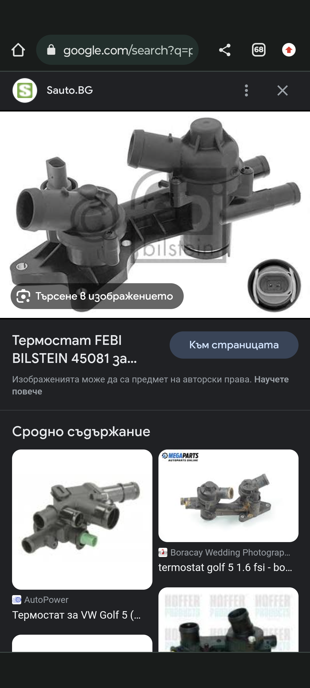Здравейте имам нужда от схема на охладителната система в частност паста в която се слага термостата и гарнитурите към него. Колата е голф 5 ,1,6 FSI 2004 година. прикачил съм примерна снимка на термостата