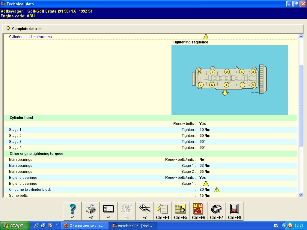 голф 3 1.6 75кс 94г АБУ С каква сила се стягат болтовете на главата ?