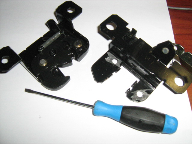 Проблемът с осветлението на багажника отново се появи. Наложи се да повторя цялата операция, но със сваляне на микроключето. Оказа се че захранването постъпва на 1 краче. Вътре пътечката беше разядена и не правеше контакт. Самата пътечка се демонтира много лесно. Едното краче на пътечката се вижда и може да бъде изтласкано на вътре. Другото е под първото краче на буксата. С лек натиск то излиза. Взех един цветен кламер. Неговият диаметър без облицовката е Ф0,5, който е необходимия за да не се повреди буксата. От другите кламери, най-тънкото е 0.7мм и не е подходящо. Огънах до по пътечката, като края който е към буксата го оставих дълъг, отговарящ на пътечката + щифта за буксата. Поставих го на микроключето, като гледах да е на равно по височина с другите две пътечки. Сложих му лепило Капчица и го оставих един час. След това почистих новата пътечка от лепило и го гресирах за да не ръждясва. Микроключето го залепи с капчица и го монтирах на бравичката. Стана доста стабилно. Сега отново имам осветление. Дано не се налага пак да си играя.