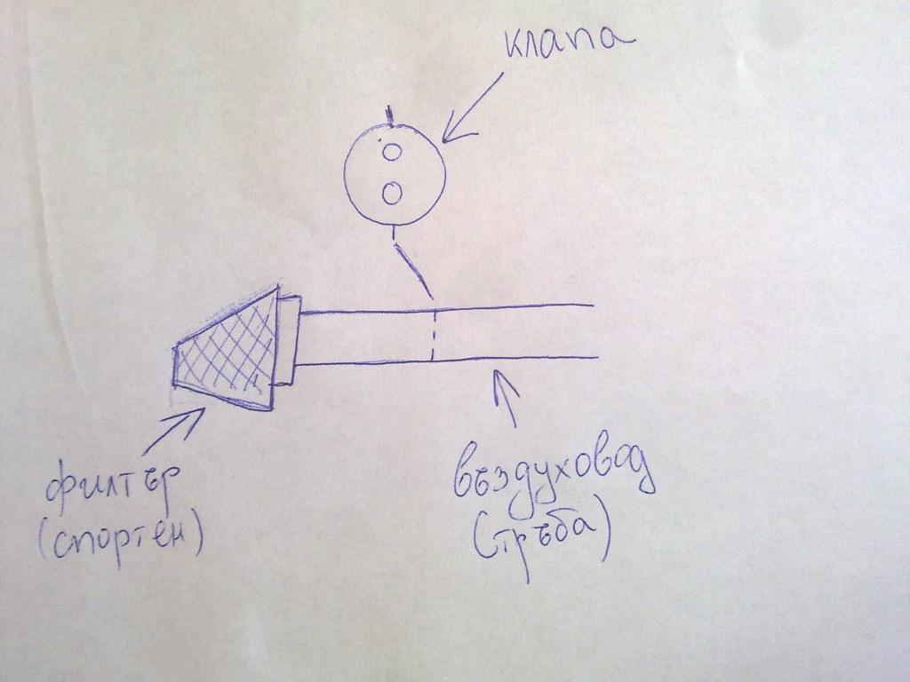 ето вариант за газ+спортен филтър download/file.php?mode=view&id=242428 заменяш тръбата с алуминиева,изрязваш клапата с диаметъра на тръбата,2 дупки на клапата за по малко въздух(в режим газ),пробиваш малка дупка в тръбата(от горе) и посредством ос закрепена за клапата я отваряш ( режим бензин)и затваряш(режим газ),с малко въображение и едно мотор4е може да се контролира клапата и по ел.път (имам познат който го свърза към копчето газ-бензин )щом прехвърли клапата съответно отваря и затваря