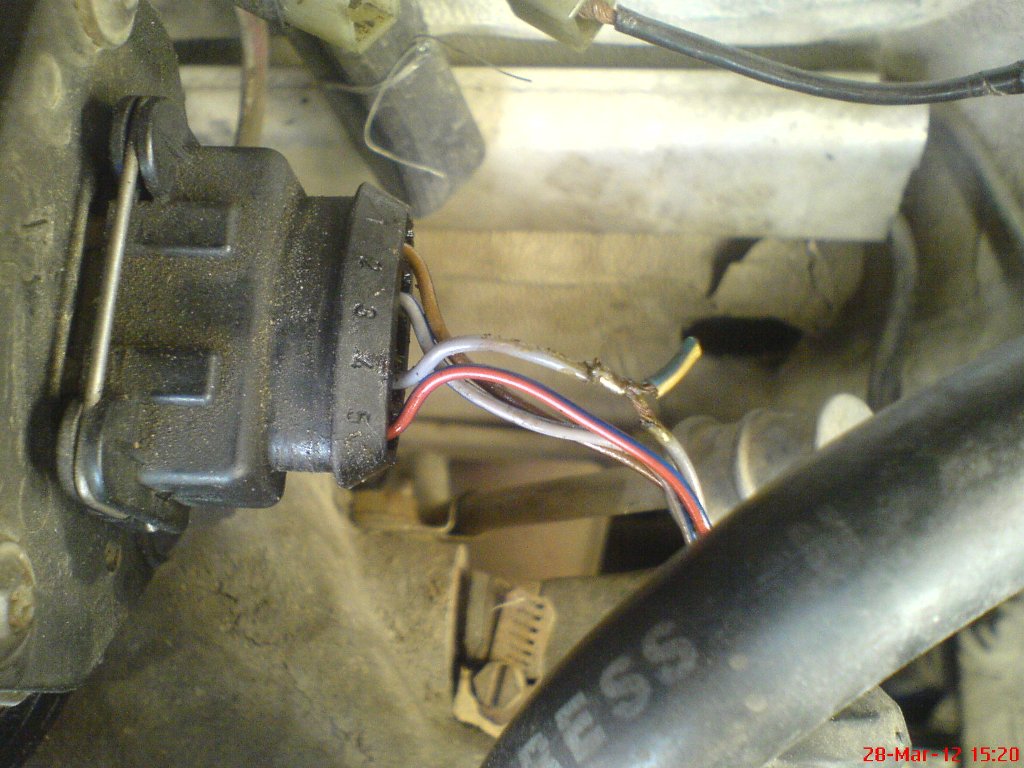Колата е Г3,1.8 АБС мотор.Колата има и газ.Поради проблеми с оборотите,се позанимавах днес по-обстойно с измерване с мултицета на всички датчици.Единствено ламбдата не съм мерил,защото днес съм я откачил и въобще нямам намерение да я закачам повече.Това в случая не е важно.При махане на маншончето на буксата на ТПС-а,за да меря,се натъкнах на следната гледка,приложена на снимката.Въпроса ми е дали някой знае за какъв аджеба е запояван някога този кабел,който виждате,и съответно беше увит с изолирбанд.Другото,което ме притеснява е измерените от мен напрежения със следните стойности.При температура според таблото ми около 40 градуса,и при подаден контакт,с прибран мощук на степ мотора и извадена неговата букса,уреда ми показа 0.57 волта.При закачването на буксата на степ мотора,волтажа стана 1.28.А при запалване вече имах 1.10 волта.Всичко това измерено между първо и второ краче на ТПС-а.Четох,че при подаден контакт,между първо и второ краче трябва да имам стойности 0.19-0.21 волта,ако всичко в ТПС-а е наред.След всичко това,да смятам ли,че той ми прави магариите с оборотите и ми шашка компютъра?И на последно място да вметна,че по темп.датчици,степ мотор,всичко измерено е в нормите!