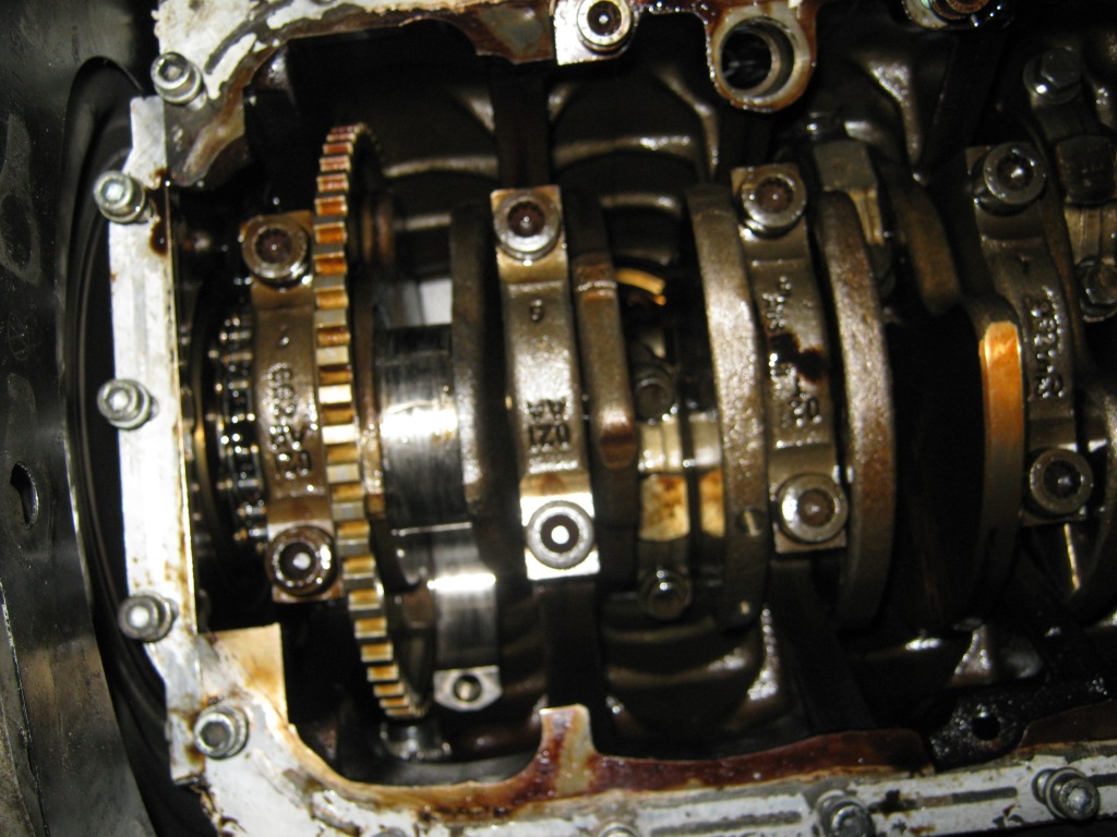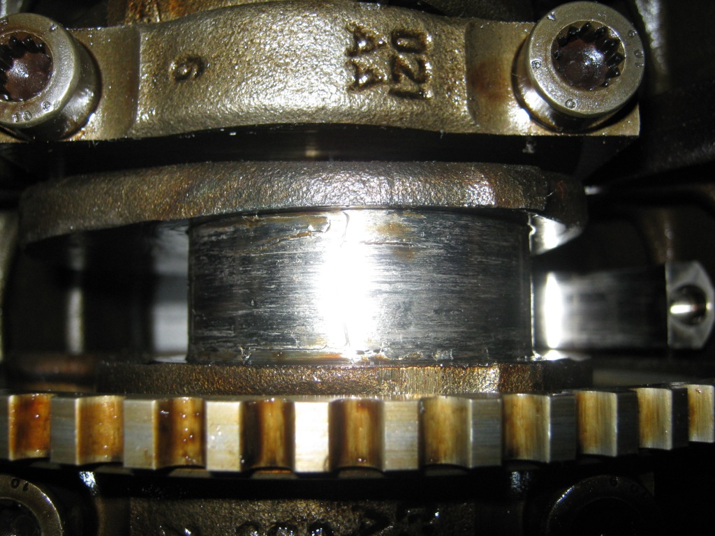 Свалих картера...Разглобих само петите на биелите,за да видя лагерите.Всичко беше в стружки и люспи.От 1 до 5 цилиндър са като нови, 6-ти е...ето снимки: