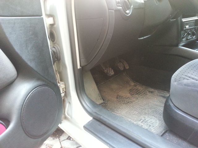Аз на голф 2-ката преди време бях така, само че отпред. Беше се наводнило отдолу и имаше една дебела вата под мокета цялата подгизнала. Беше почнало да мирише вътре ужасно. Надигнах мокета откъм прага и изхвърлих цялата вата. Тук обаче не знам как се маха тази пластмаса върху прага, сигурно ще е по-трудно.