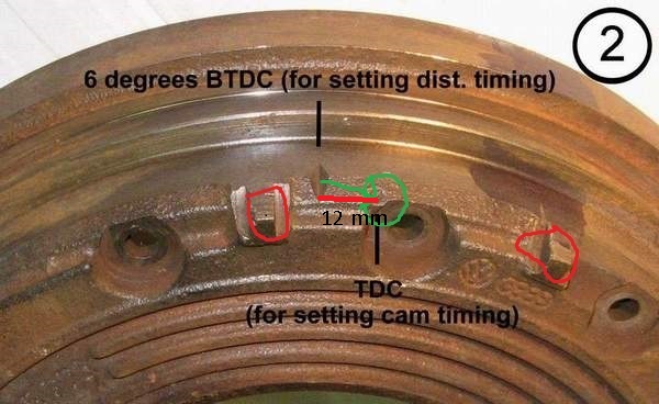 Вместо да гледаш маховика няма ли да ти е по-лесно да погледнеш шайбата отпред на коляновия вал? Там също има белези.