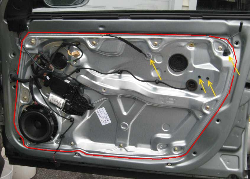 Пробвай да оливаш с една кофа вода по страничните стъкла и гледай дали водата излиза между вратата и пластмасовата кора. Ако е от там, значи уплътнението между вратата и вътрешната кора, която държи стъклото се е скъсало/изгнило.