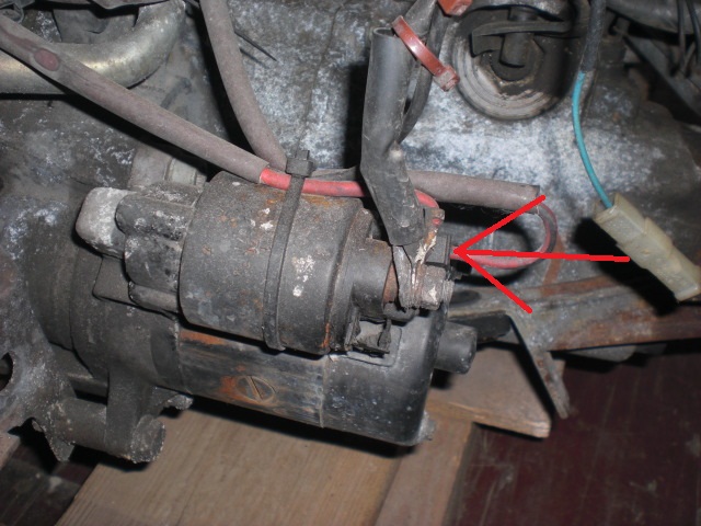 Пробвал ли си тая гайка да я развиеш, дето отива плюсът? Зачисти контактните повърхности на клемите на стартера и опитай пак.