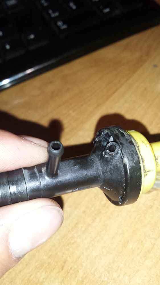 Проблема е, че когато свалях кабелите на свещите измъкнах едната от тръбичките без да искам от тази "клапа" и счупих едната пъпка на която се надява маркучето на инжекциона. От тогава колата не спира да гасне и не работи както трябва.