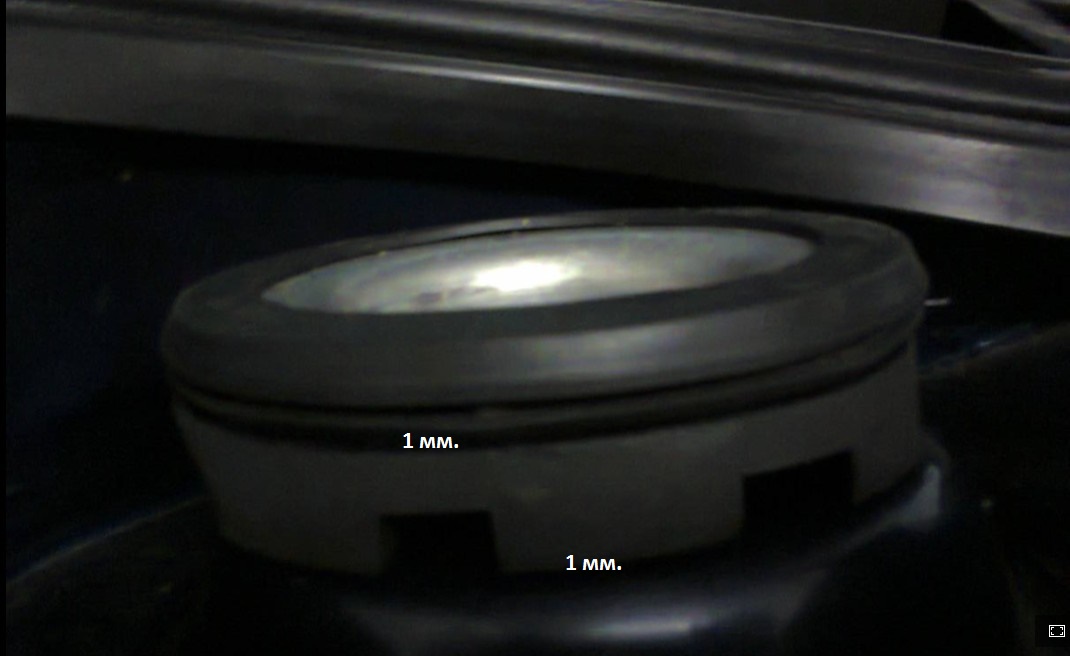 Но дебелината и трябва да се мери според износването на тампоните така,че след натягане да има възможност гумената шайба да уплътни луфта ,но и да е свободна, за да се движи както се вижда на снимката(1 мм.)