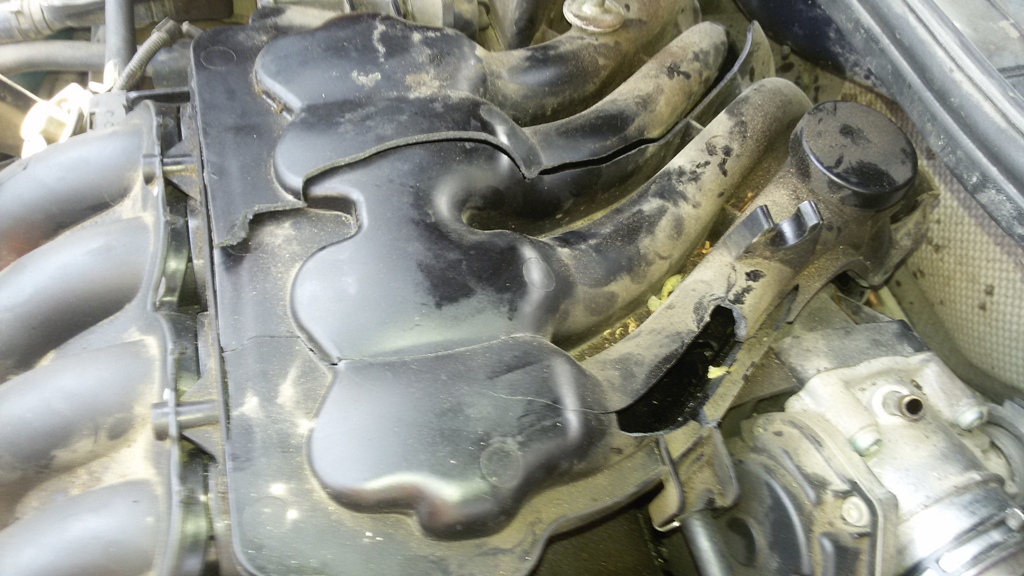 входящият колектор разцепен по сглобката и през средата заедно с декоративния капак.