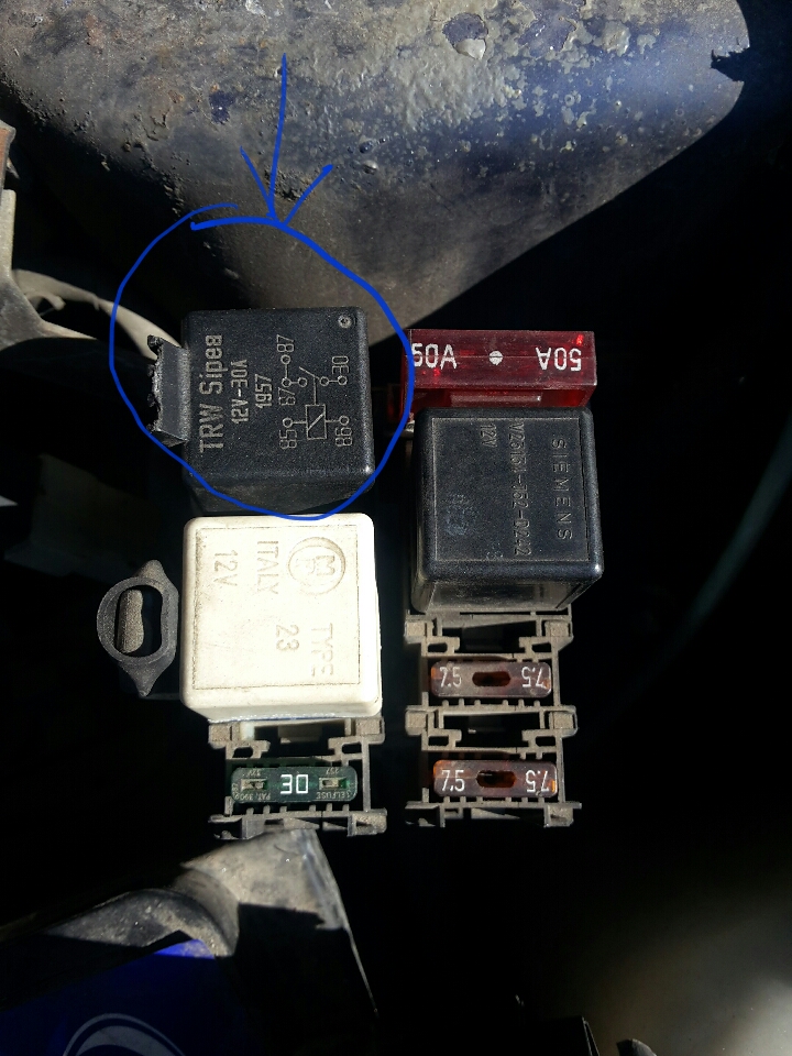 Здравейте колеги. Имам следния проблем, някой някога е подменил едно от релетата за пускане на климатика и сега не мога да го използвам. Иначе компресора е Ок, системата е заредена и работи, тествано е. Кутията за управление на климатика се намира в дясно от разширителният съд, качвам и снимки на въпросното реле. Климатика е допълнително слаган в Италия марката е "Diavia". Колата е VW Golf 3 1,6 ABU 75к.с. 1994г. Подменетото реле е очертано на снимките. Предварително Ви благодаря!