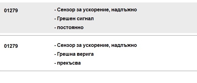 До сега винаги успявах да лекувам светването на лампата на ABS-са, като отварях буксата (показана на снимките) на блока и я пръсках с контактен спрей и проблема се решаваше, но вече не става, лампата си свети въпреки пръскането и не изгасва, като изписва грешка номер 01279 (показана на снимка).