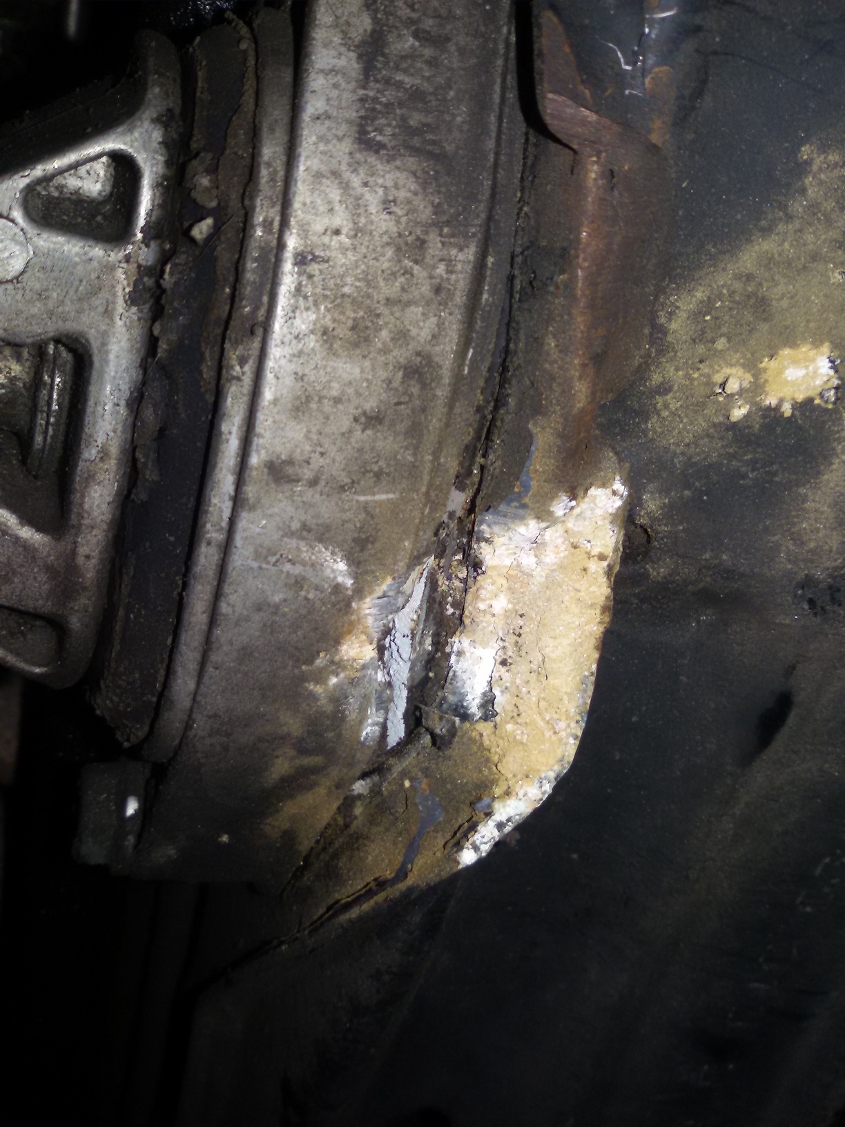 За съжаление колега, крив преден мост, а вероятно и скъсан тампон (така наречения dogbone). Случвало ми се е по същия начин да излезе паве и да ми изкриви моста на двойката :(