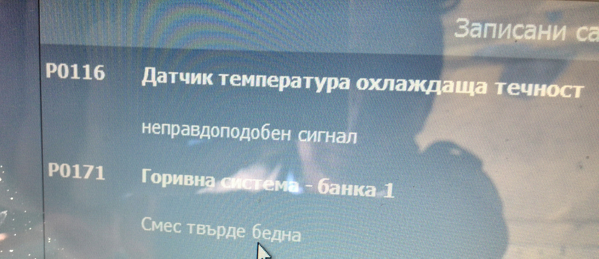 бих искал да добавя, че колата беше още по зле но след тест през компютър излезнаха селдните грешки P0116 и P0171 (прокачам и снимка с тях). След това смених термостат и датчик за температурата и изтрихме гршките и до колкото знам не са се натрупвали повече. След това колата леко живна, но все още е много много мудна. Аз като зяло не разбирам ного, но ше проверя за този "cam follower" дали го има или не. А иначе колата е на 181 000 км.