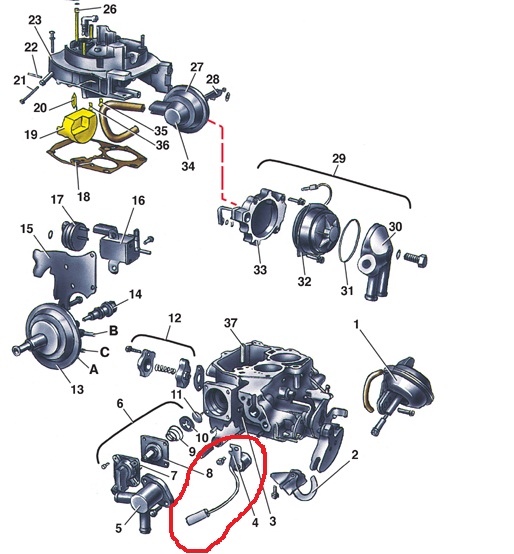 Ето и в книгата какво пише.Номер 27 е:нагревател на канала за частично отваряне на дросела