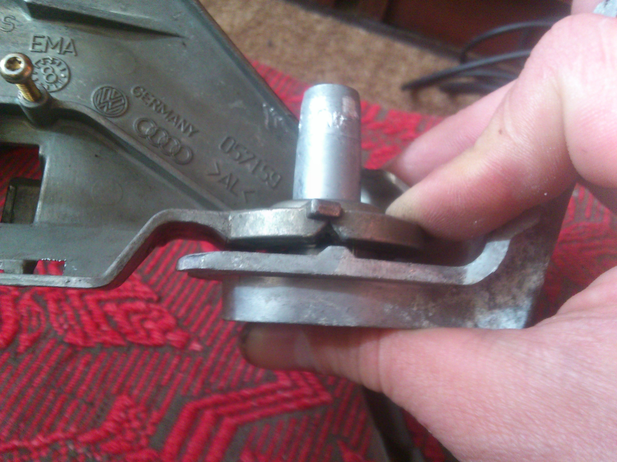 Това чопче си има някаква роля там на голфовото огледало и предполагам е за прибирането на самото огледало. Защото това на голфа се прибира по един начин, а на аросата по друг. Сякаш на аросата стърчи повече, а на голфа е по прибрано към вратата.. Явно никой не се е сблъсквал с този проблем или аз не съм имал късмета да случа на такова огледало, което да пасне от първия път. За сега няма да пипам нищо, поръчал съм цяло огледало, понеже на това корубата му е пукната и лайсната м/у огледалото и корубата е счупена. Липсва едно парче в края и седи грозно. Ще рискувам да разглобя новото огледало за да видя за какво иде реч. Ако и там нещата са същите ще ида на стругар със двете основи да ми издълбае на фреза един канал във стойката на сеатското огледало.. Твърдо съм решил да сложа малко огледало и ще го направя. :)