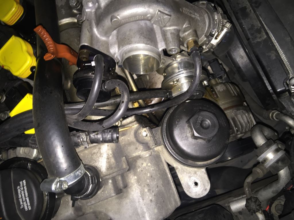 Има ли някаква вероятност проблемът да не се дължи на турбината. Поне аз не мога да се сетя за друг начин маслото да се окаже там, освен ако самата турбина не го хвърля. Картерната вентилация е изведена под колата, така, че няма как турбото да се омаслява от нея.