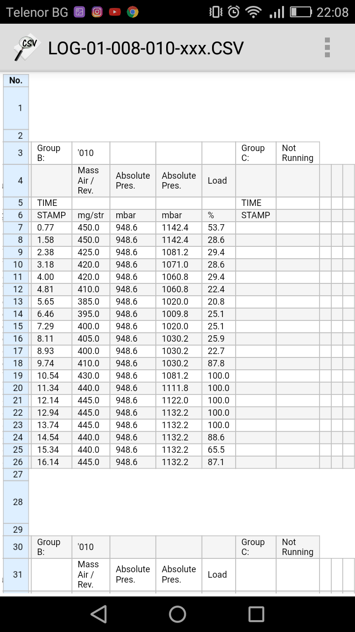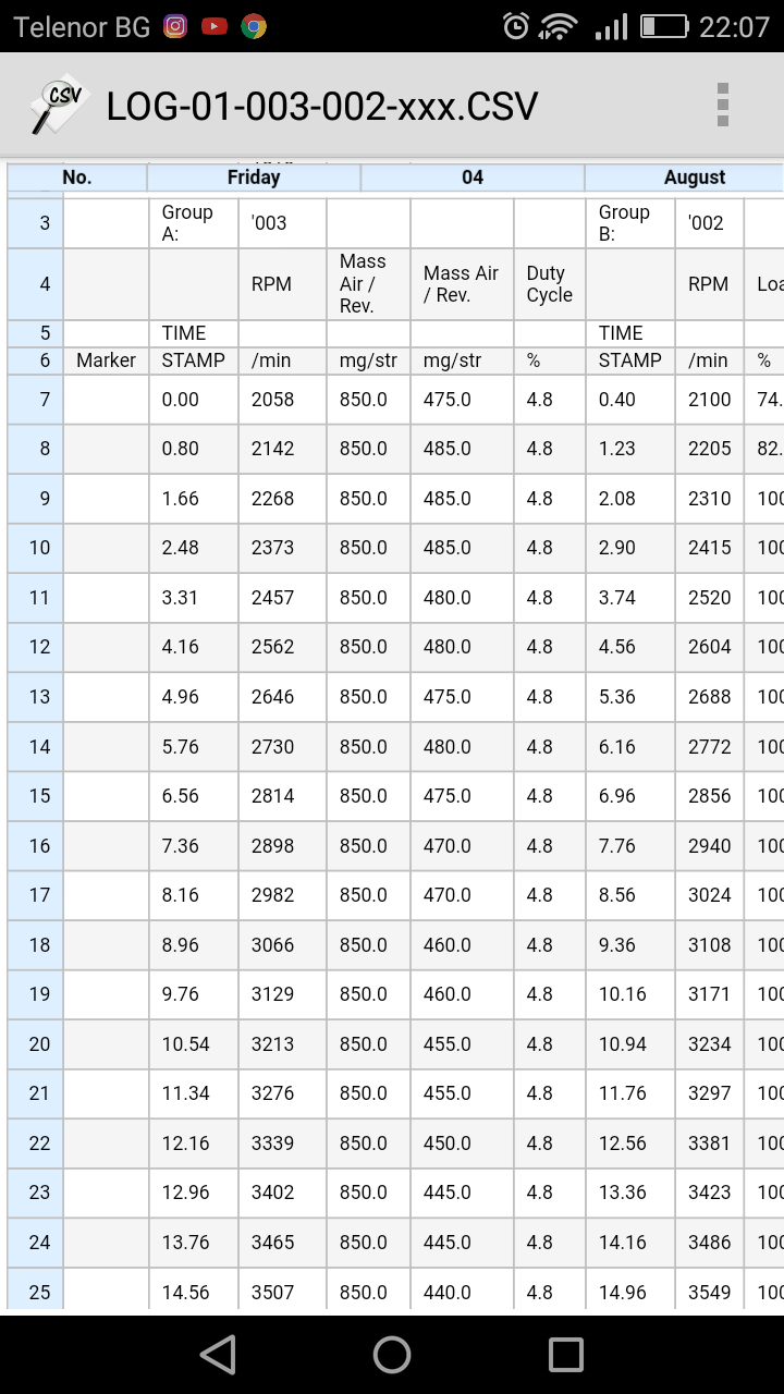 Колеги извинявайте за забавянето ,бях ангажиран с други работи.Направих нови логове надявам се да са както трябва и да кажа ,че след 3000 оборота колата едвам набира.