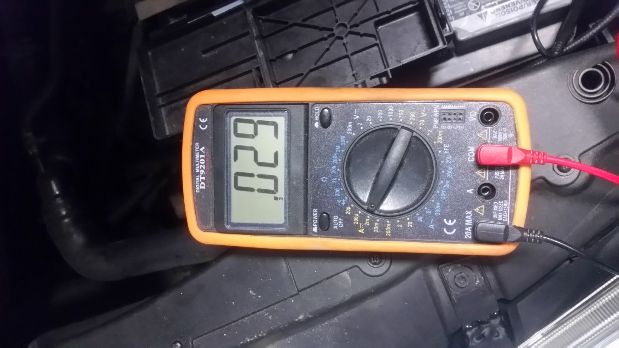 Днес след като се зареди акумулатора откачих едната клема и свързах уреда.заключих колата и изчаках около час.но показанията са същите.