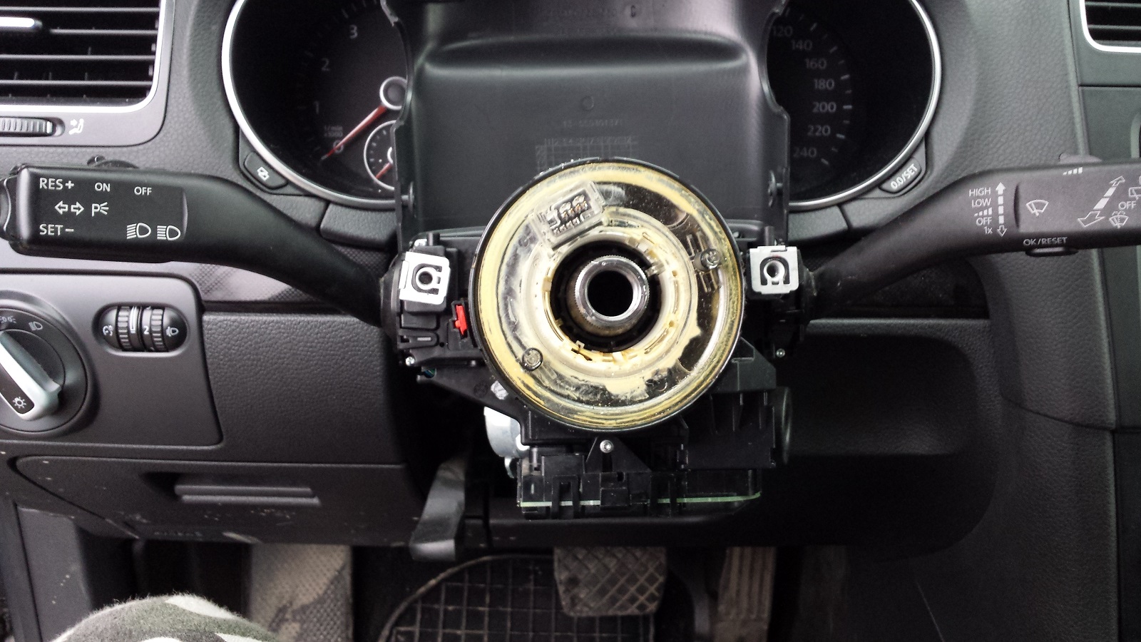 Да знам че модула би трябвало да поддържа темпомат (1K0-953-549-CP Type 2 SW 0111 Midline - Midline: Cruise Control, Board Computer)...също така проверих буксата към модулда има черено-бял кабел към краче13...така че не знам къде е проблема...не знам дали има вариант да се провери или замери лостчето дали е съвместимо с модула?