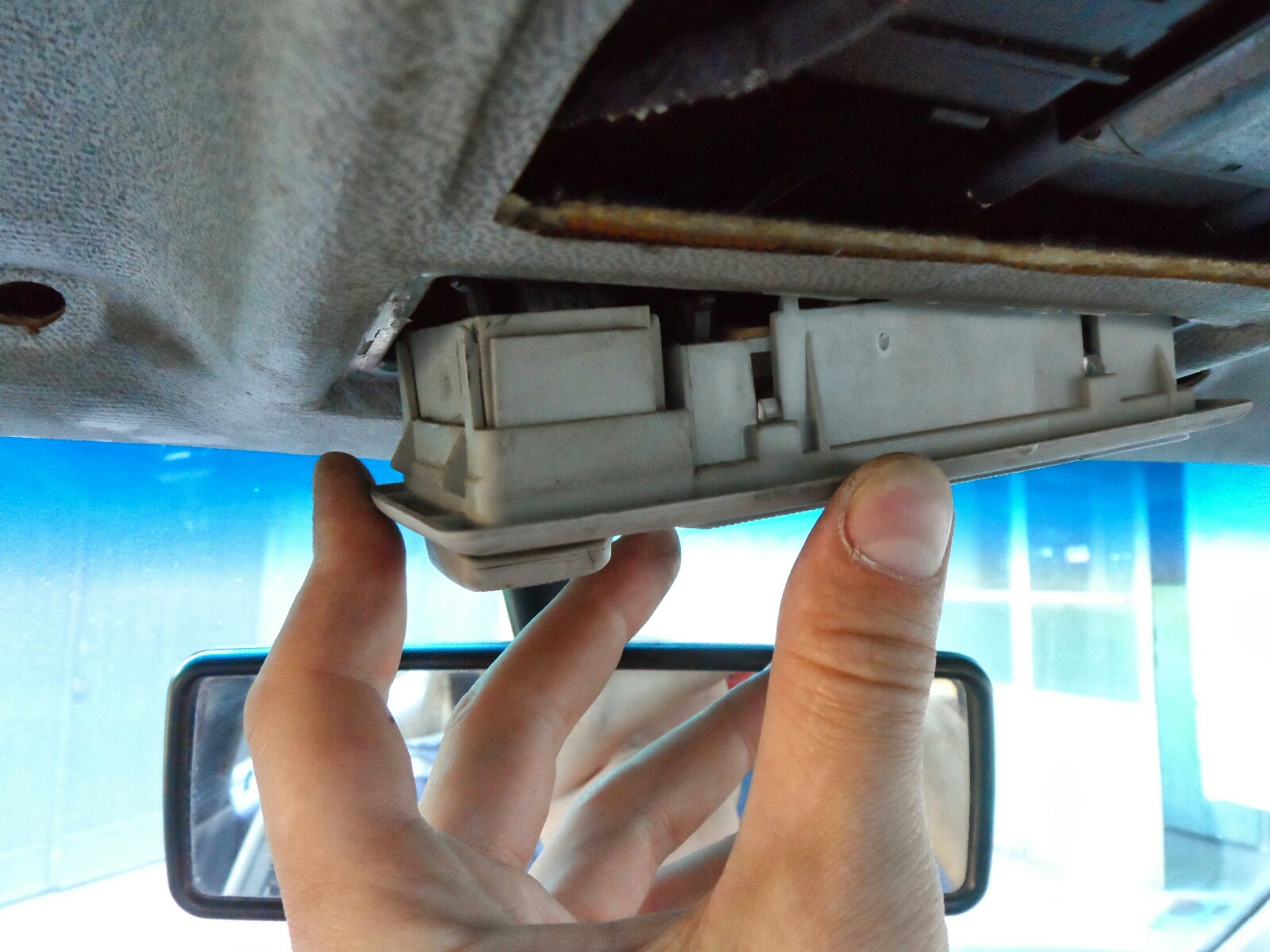 На моя, в дясно по средата има метална пластина - тя закрепя плафона към тавана. Единия път като го вадих, тази пластинка отиде някъде навътре и после дълго време беше с хартийка, докато не свалих тавана да си я намеря...