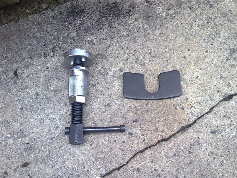 За прибирането на буталото навътре става и без този инструмент, а с негов импровизиран.