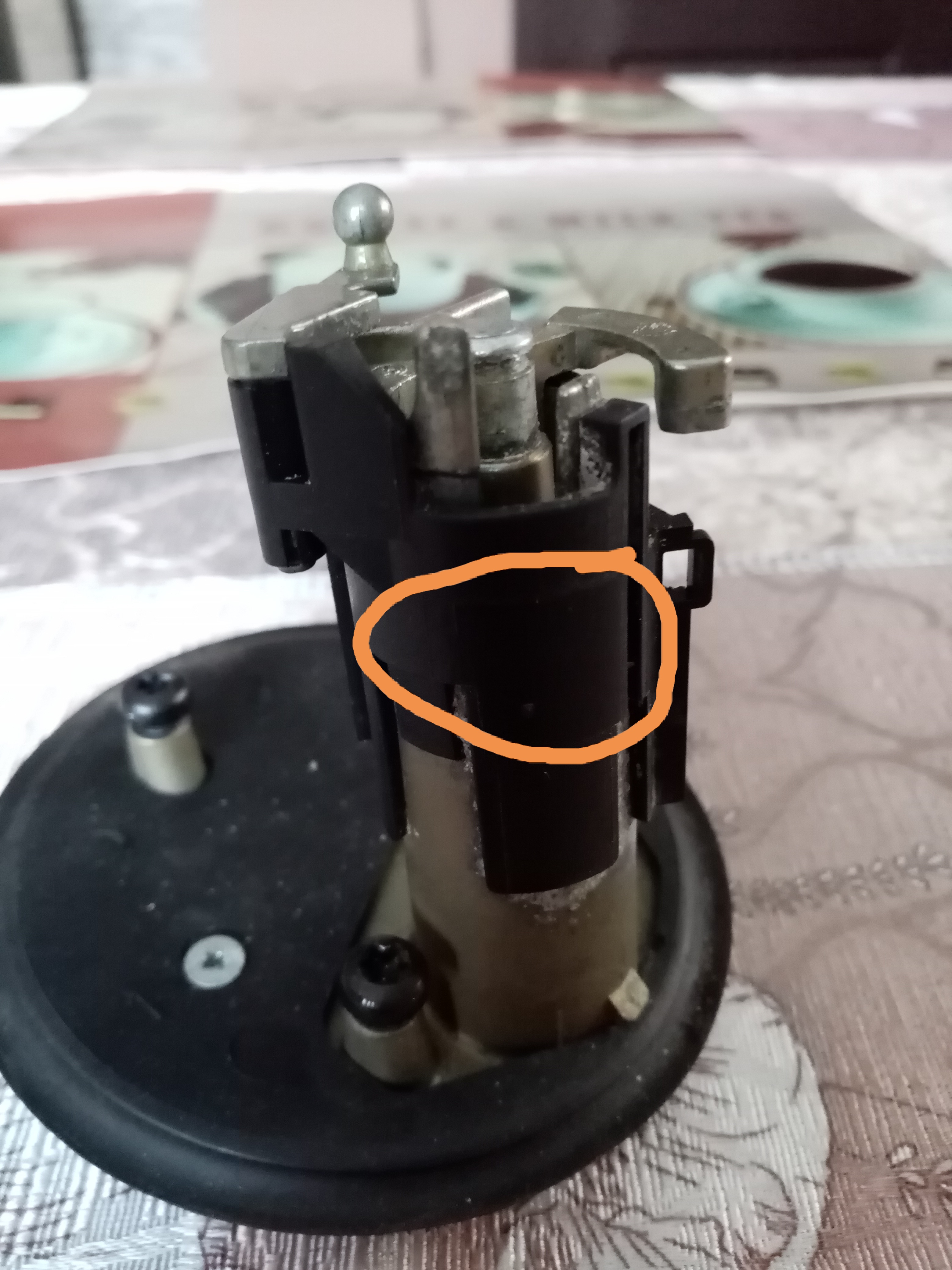 Зъбчетата се издърпват леко нагоре ,не се бутат ,и пласмасата излиза нагоре .Не се върти ,гледай да не чупиш нещо.После вътре има една пластмасова шайба която влиза по определен начин .