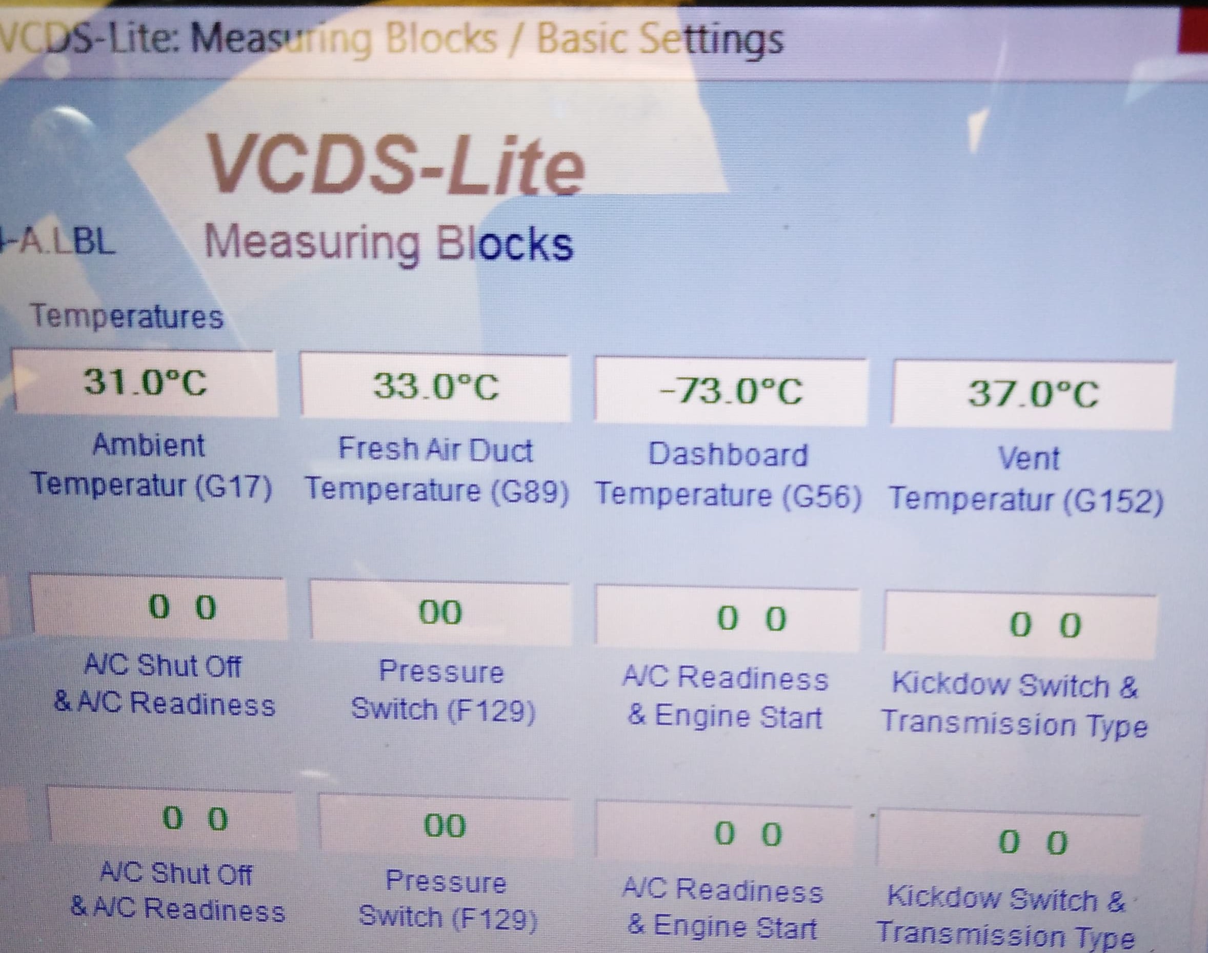 Този датчик, дето го дава -73 градуса сигурен ли си, че е в духалките? Почти съм сигурен, че е в него проблемът.