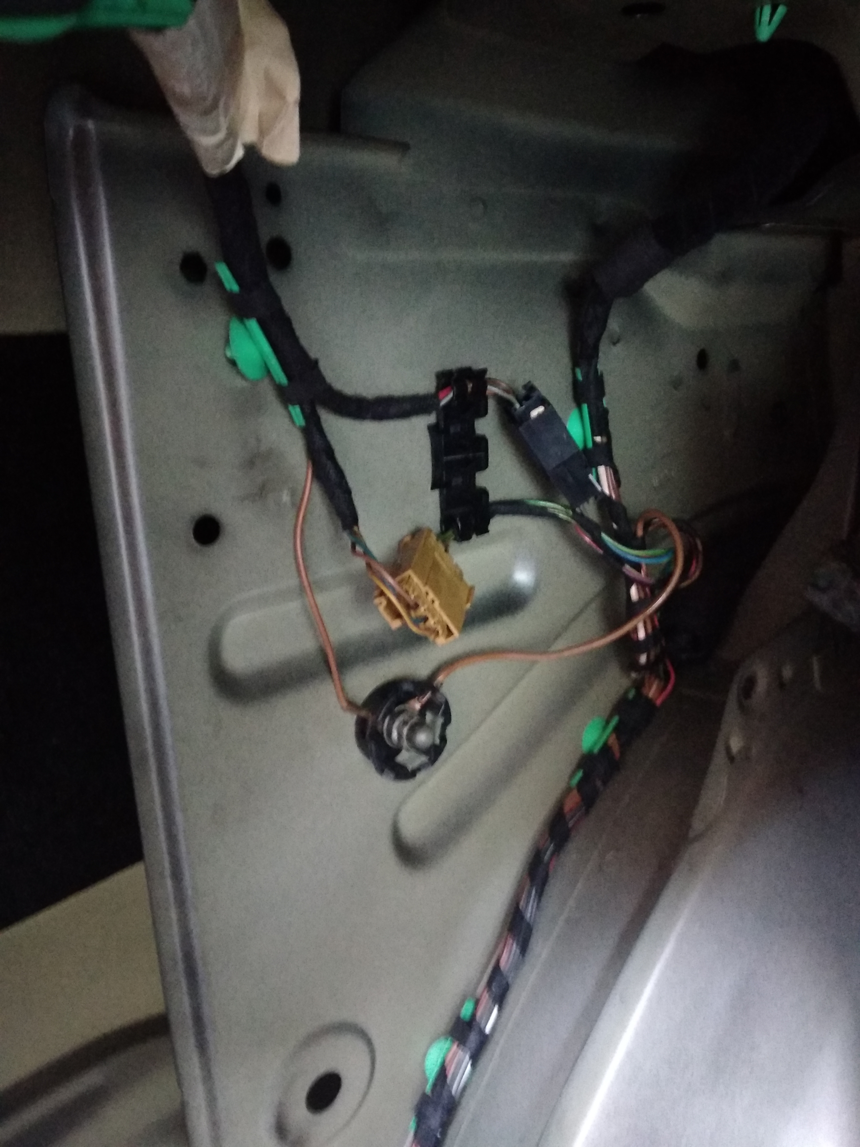Инсталацията от багажната врата след като влезе в купето има ли някъде букса? За да мога да измеря дали няма прекъснат кабел в маншона без да го режа?