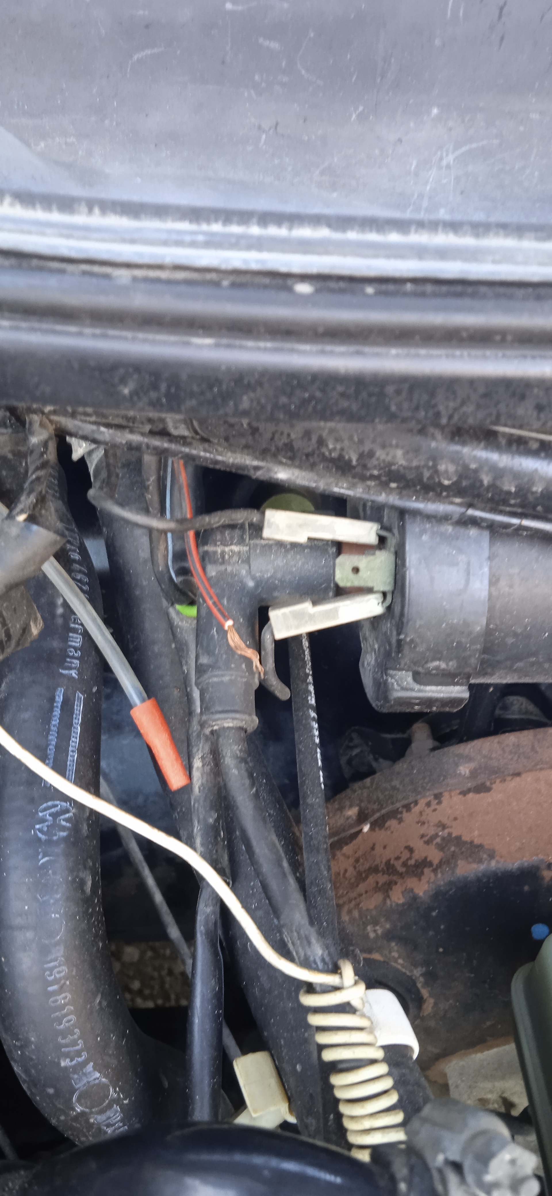 Свържи червен+черно кабела към свободната клема на двойната букса (на втората клема е вързан зеления кабел) към бубината. Намира се зад високоволтовия кабел и не я виждаш в момента.