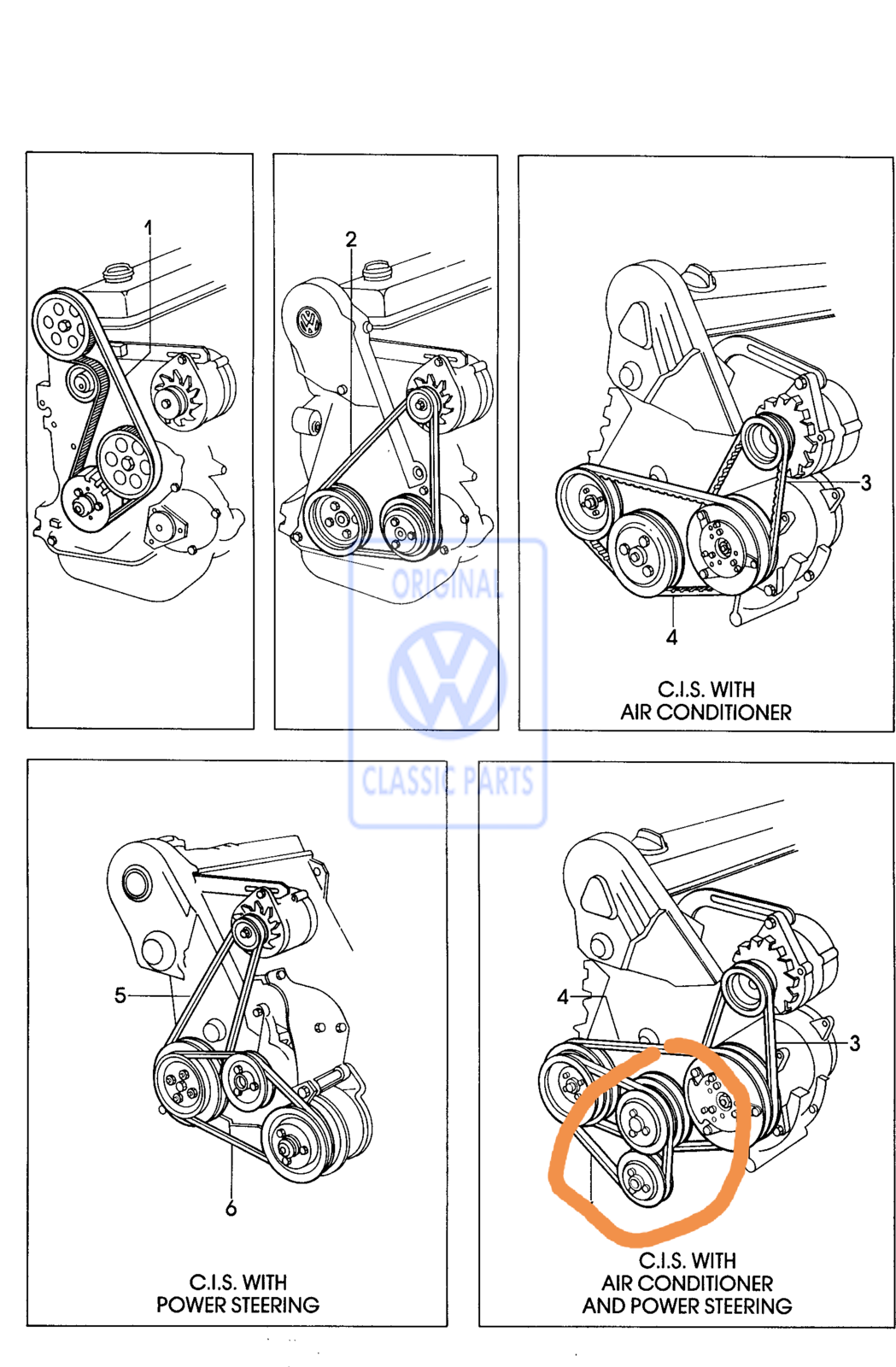 Търси двойна шайба за колянов вал за климатик+хидравлика. Или просто се добавяше още една и ставаше като двойна май. На водната помпа не ти трябва двойна. На снимката, която си дал е точно така.