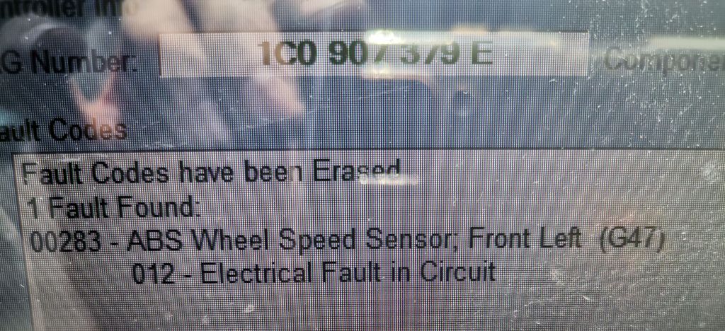 Още като я взех колата светеше проблем с ABS-а. Двата предни датчика не работеха, смених ги, остана само грешка с предния ляв.