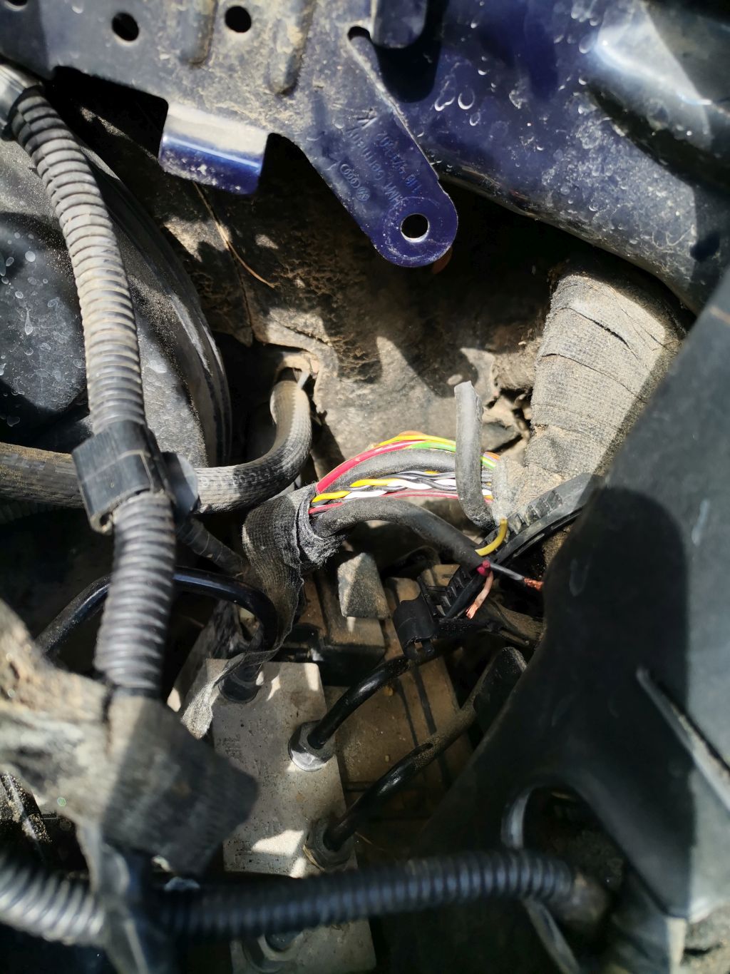 Мислех да прекарам байпас от кабела откъм двигателя, но е много заврян - по никой начин не може да се бръкне, трябва да се махне ABS помпата, а дори и тогава пак ще е много трудно, а и няма гаранция, че и там влагата не го е изяла. Там той се слива с дебел сноп други кабели и отива на някъде, вероятно към компютъра.