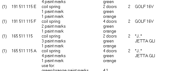 Нуждая се от 2та вида таблици с означенията на цветовете на точките на пружините за 2 модела VW за да мога да сравня и да преценя кои ще са най - подходящи.Трябва ми таблица за VW jetta mk2 и Таблица за vw pasat b3 седан.Благодарим.