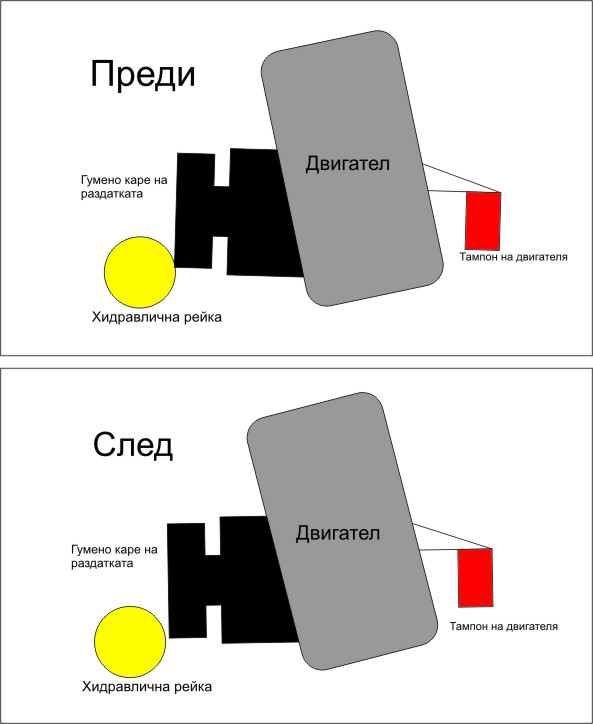 paco написа:Тампона зад скоростите в/у магарето го премахнах и си сложих друг оригинален за Г4 в/у десния рог. Другите два тампона зад двигателя и на гредата отпред си остават на местата.