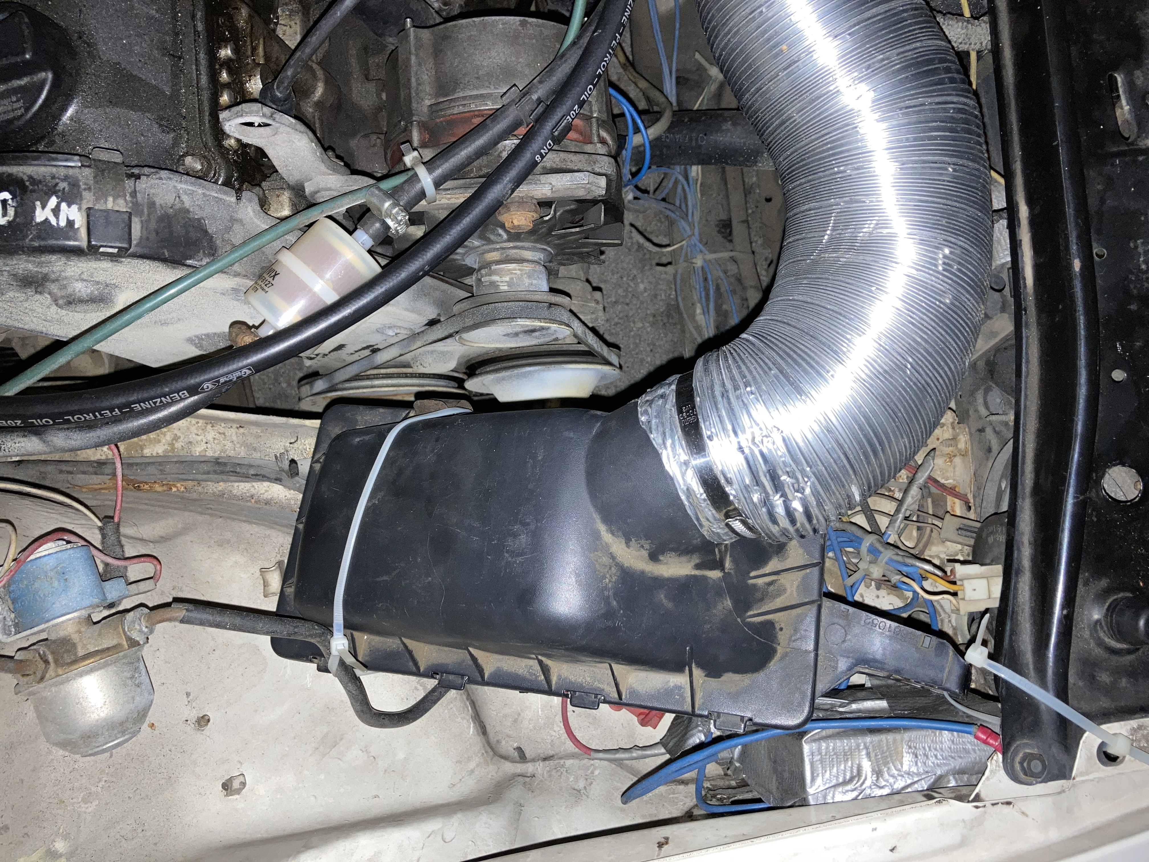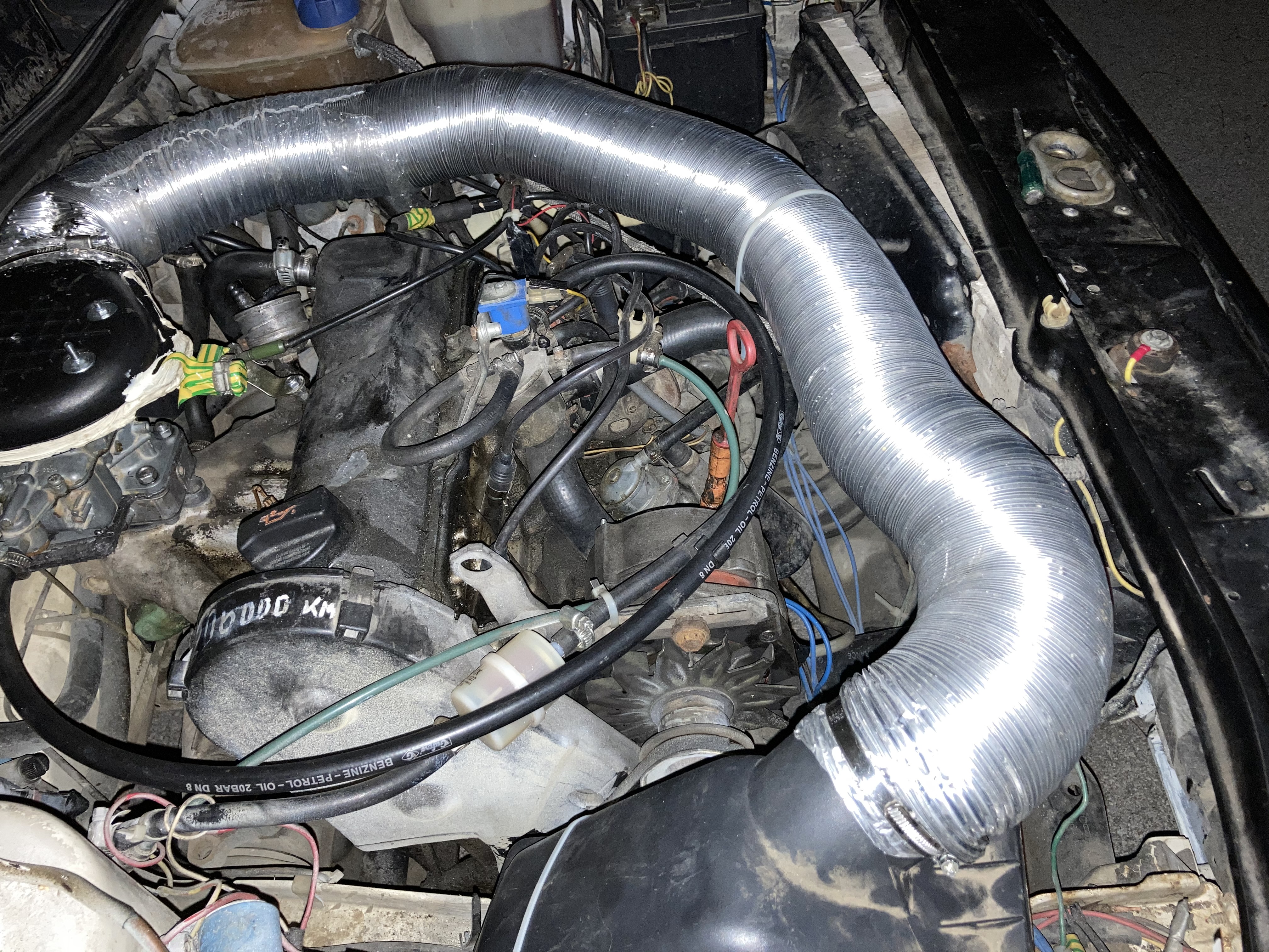 Здравейте отново ! Намерих друг карбуратор видимо доста запазен. Отново 2101. За сега моторът работи доста добре и има много добре ускорение. Пали от четвърт на бензин в студ. Капакът на карбуратора е от "Москвич алеко". Въздуховодът е алуминиев за аспирация. Филтърната кутия е от crysler voyager по спомен 2.2 мотор.